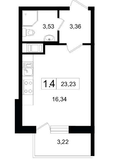 Общая площадь 23.23 м2