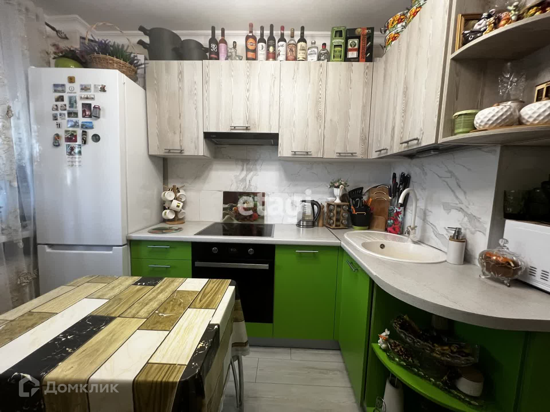 - Просторная кухня .