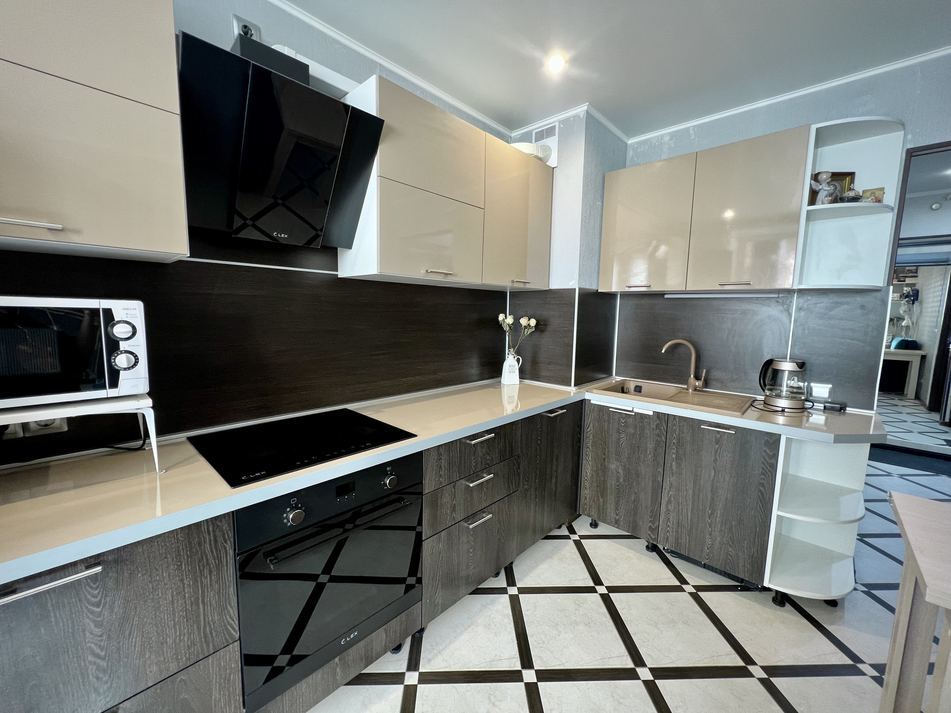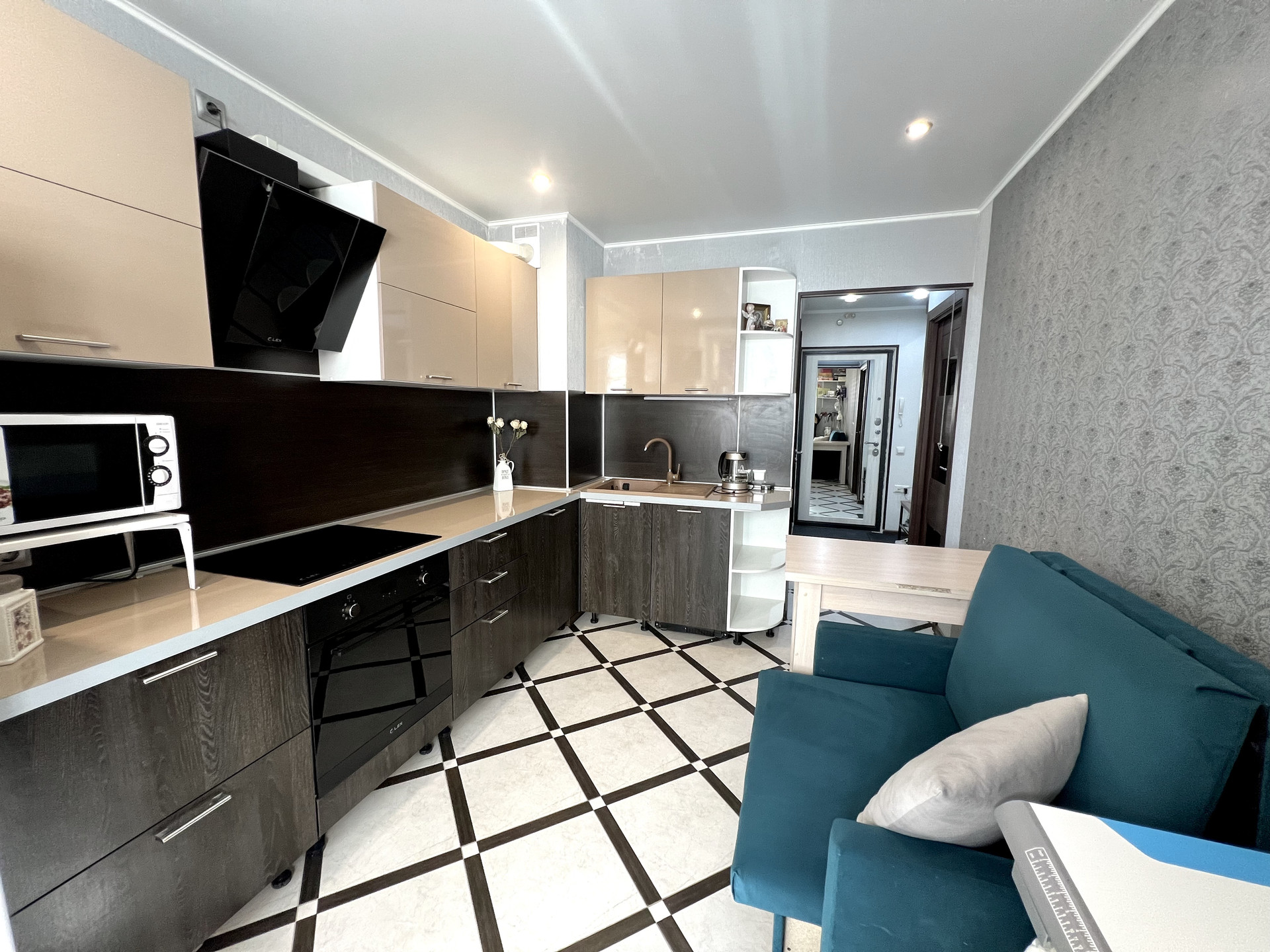Покупателю в подарок остается кухня со всей встроенной техникой + шкаф-купе в коридоре!