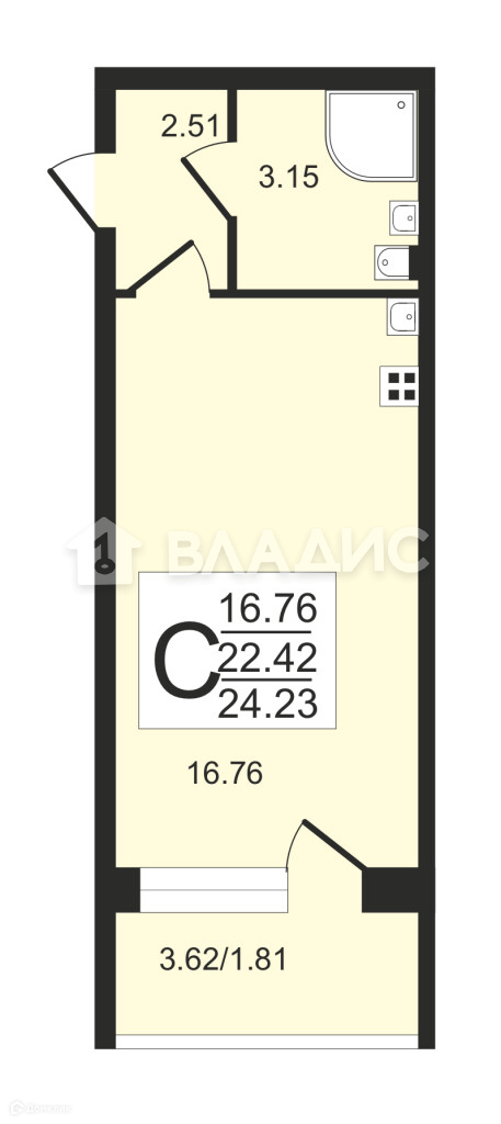 Общая площадь 22.1 м2