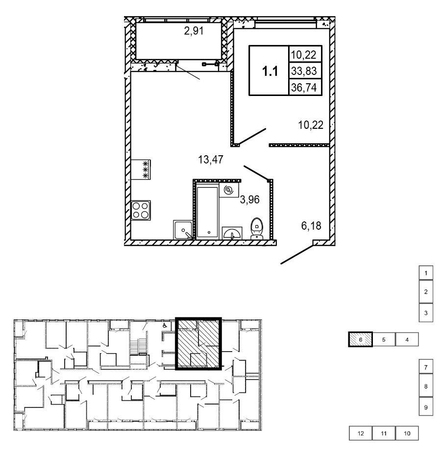 Жилая площадь 10.22 м2
