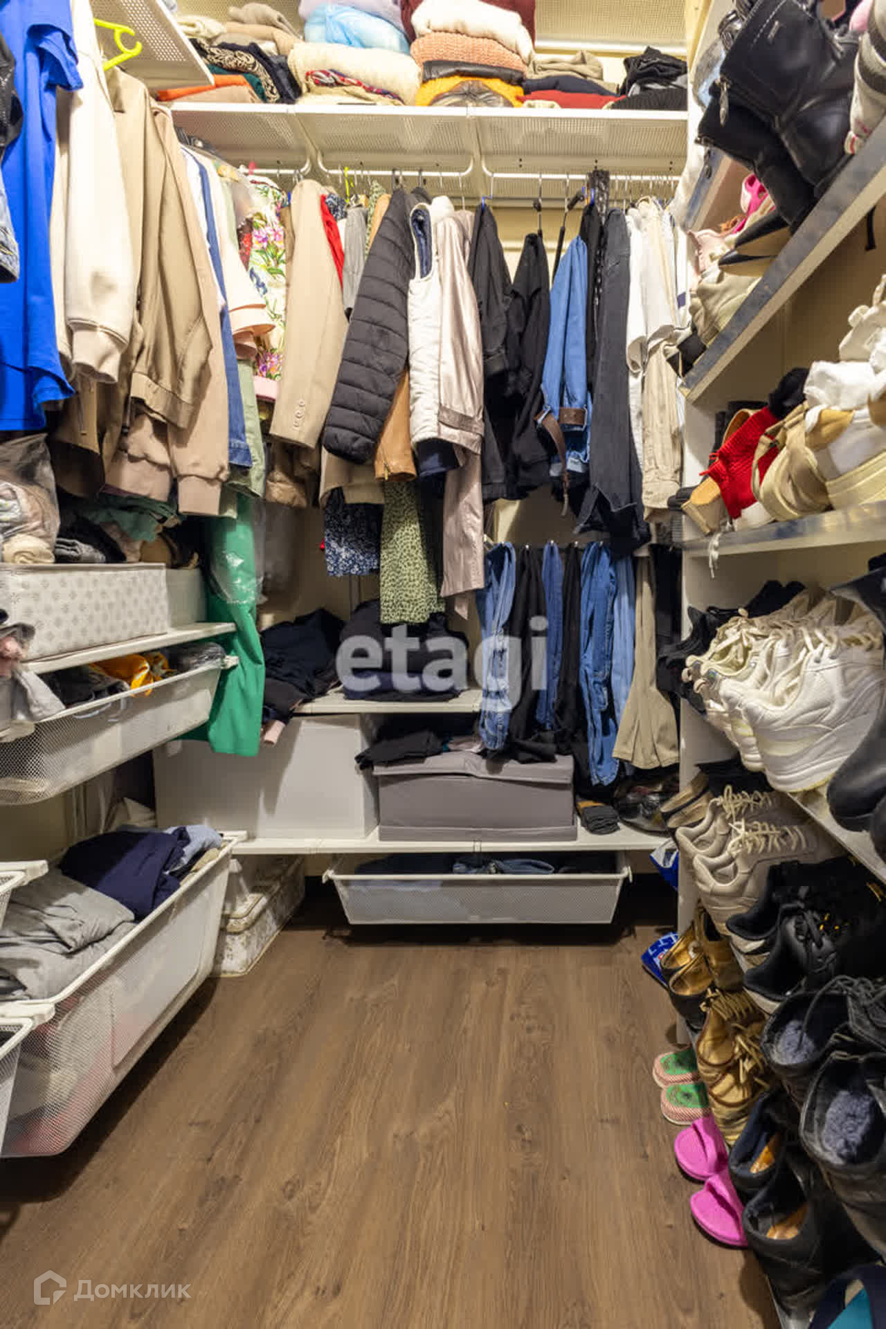 - одна гардеробная с системой хранения от ИКЕА, где можно разместить все ваши вещи
