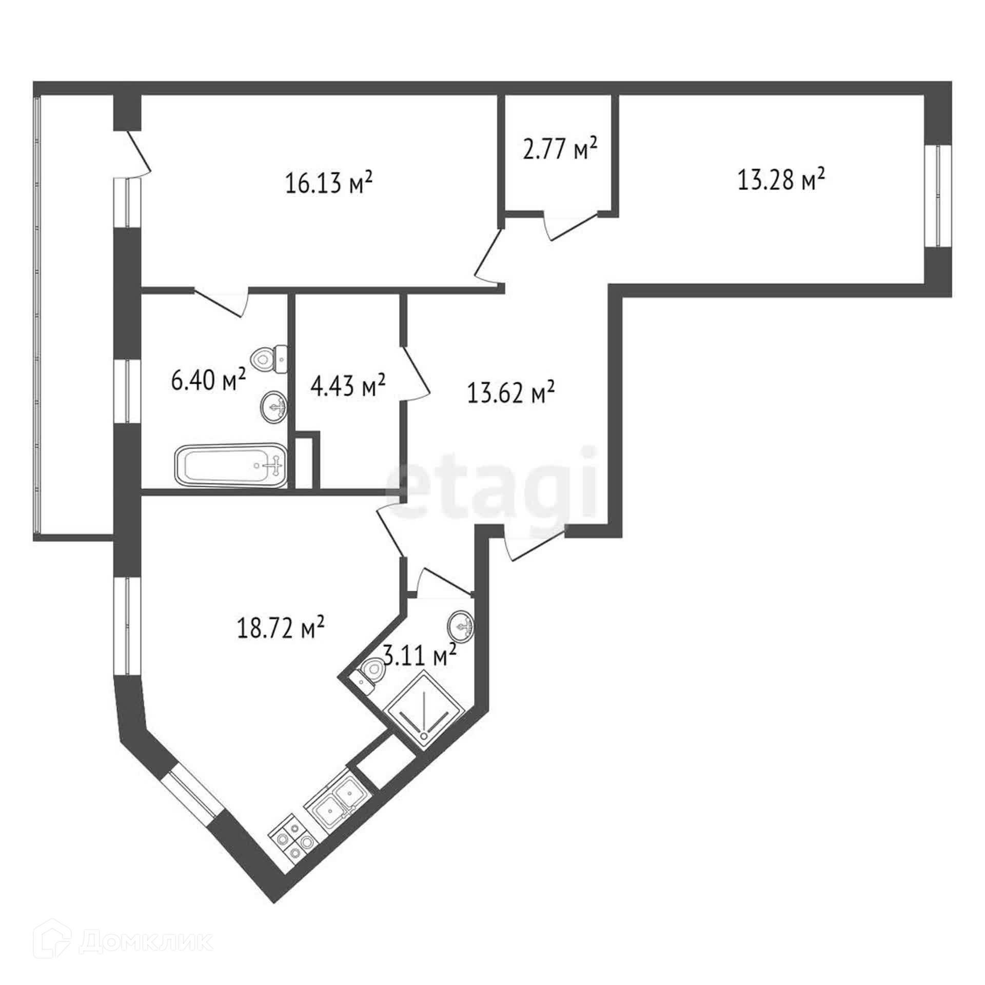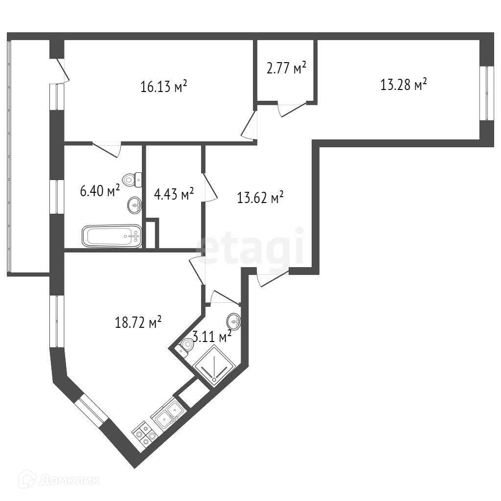 4. Просторный коридор 13 кв.м из которого можно попасть во все изолированные комнаты.