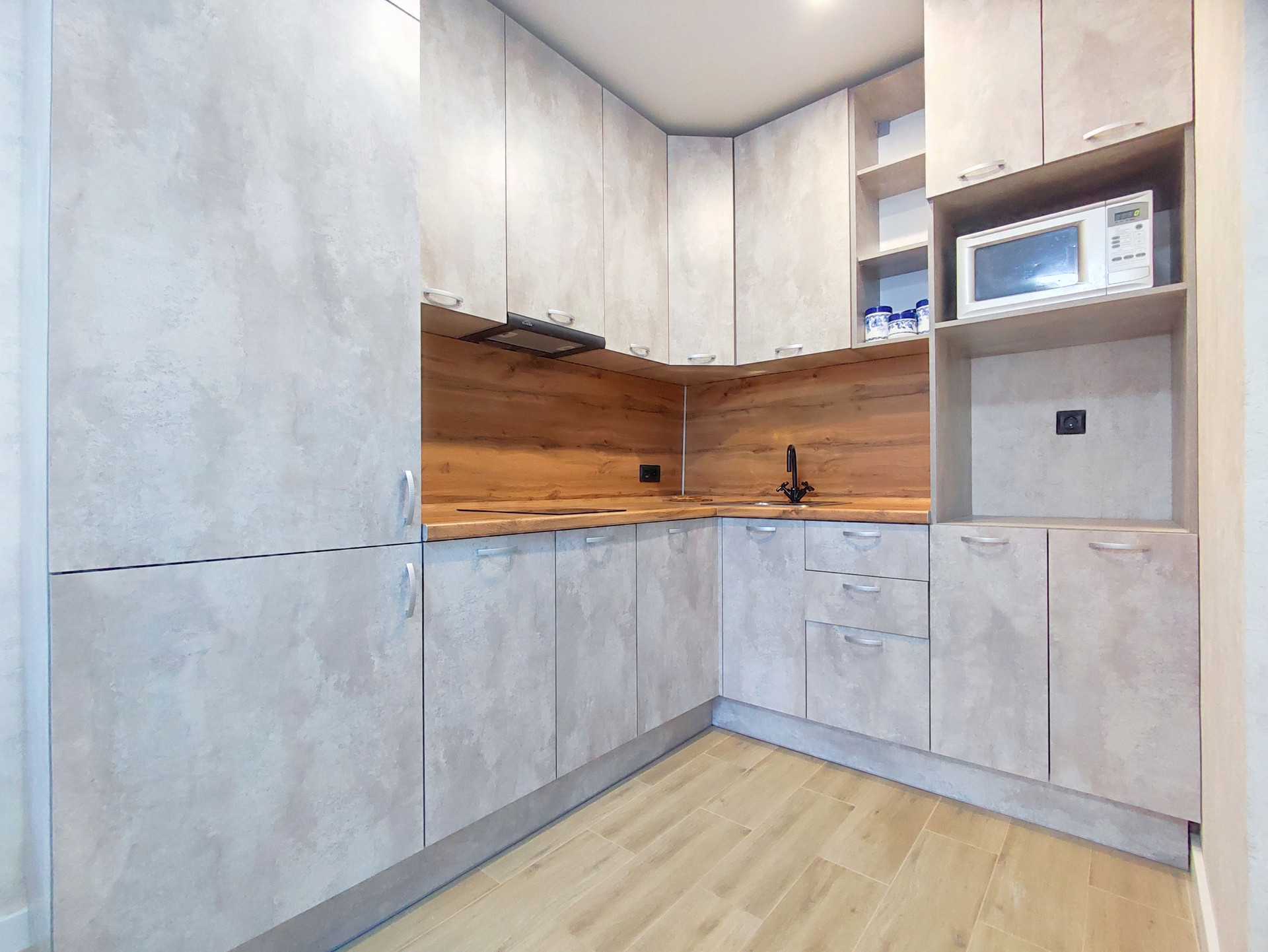 Выполнена качественная чистовая отделка. Установлен, выполненный на заказ, большой кухонный гарнитур высотой до потолка. Встроенная бытовая техника. Натяжные потолки с несколькими сценариями освещения. На стенах качественные износостойкие обои. На полу в кухне, коридоре, лоджии и санузле – керамогранит, в спальне - ламинат. Выполнена продуманная разводка электрики, на лоджии тёплый пол и освещение. В санузле установлена качественная, дорогая сантехника, полноценная ванна. Ремонт делали для себя, ни на чём не экономили!