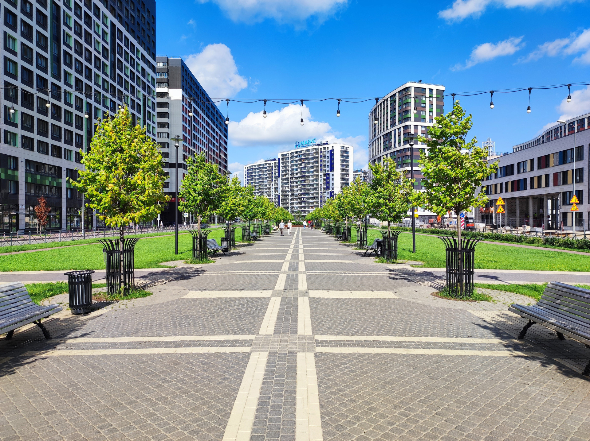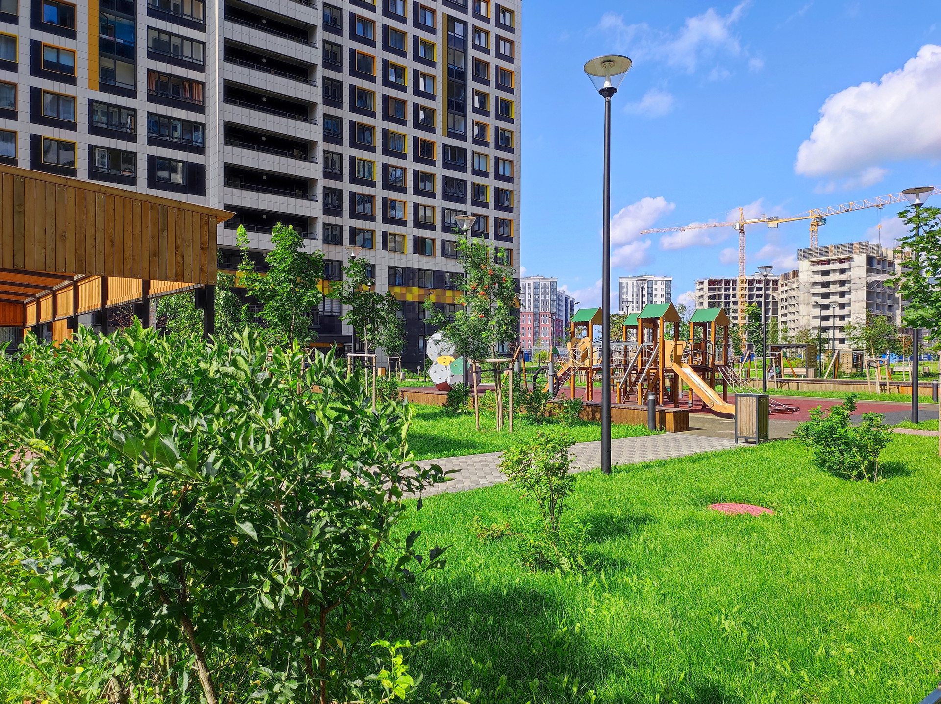 Рядом с домом в этом году открывается ТРК «Небо» с кинотеатром, большая поликлиника. Также поблизости будет построен спортивный комплекс с бассейном. На территории комплекса будет открыто 2 детских сада, многоуровневый паркинг. Напротив дома достраивается современная школа. Вдоль комплекса обустроена аллея с фонтанами для приятных прогулок.