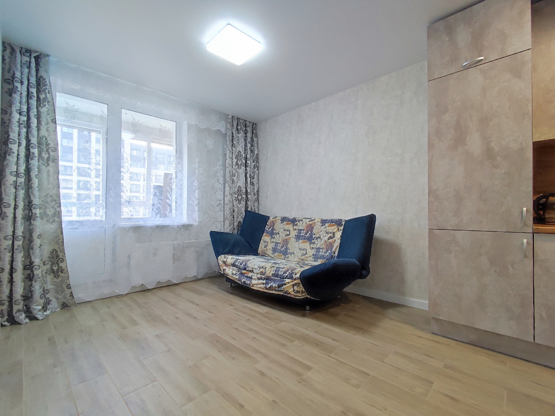 Рациональная планировка квартиры: просторная кухня-гостиная с выходом на лоджию - 15,1 м2, спальня - 11,8 м2, большой совмещённый санузел – 3,9 м2, коридор с местом под гардеробную – 4 м2. Окна выходят в тихий двор.