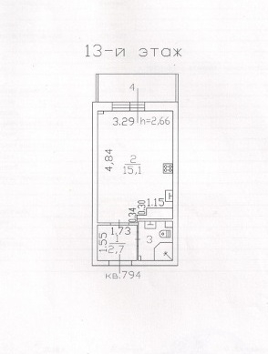 Жилая площадь 15.1 м2