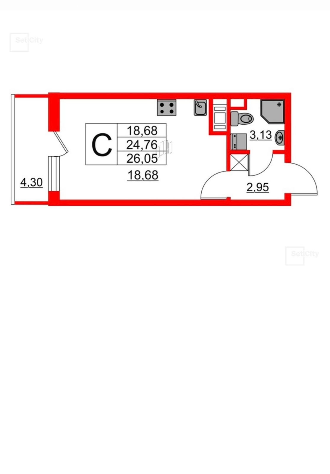 Общая площадь 24.76 м2