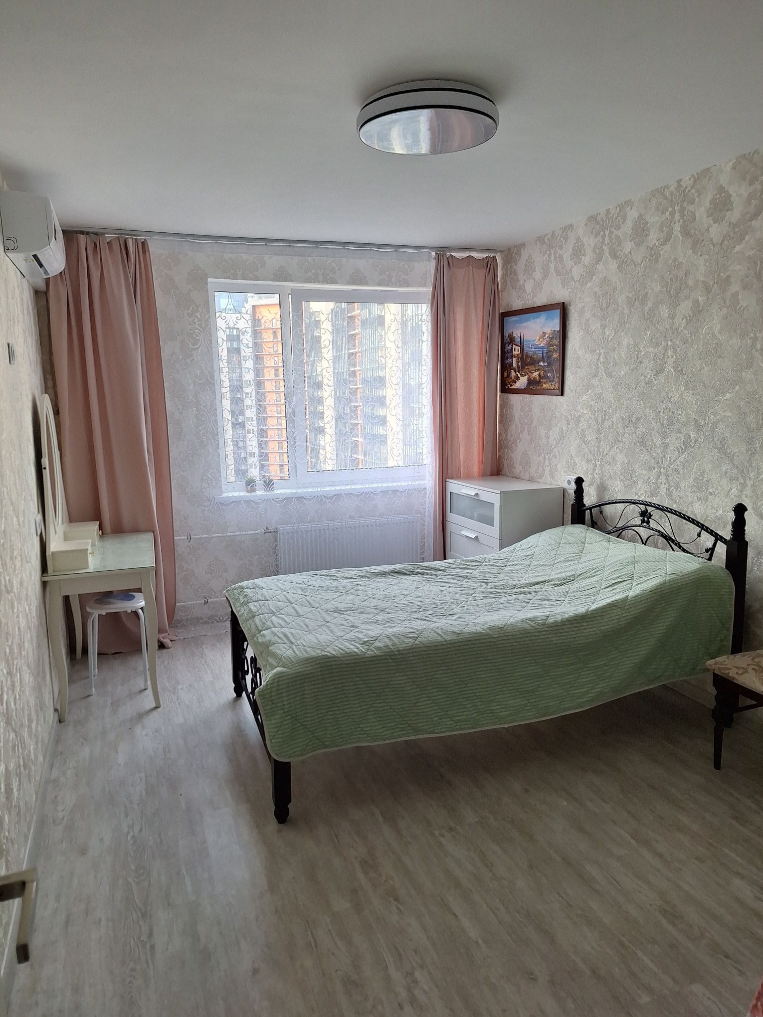 Большая и светлая комната,гардеробная,большая кухня с  техникой,необходимые веши для жизни.Кухню ВАРДЕК ОСТАВЛЯЮ.