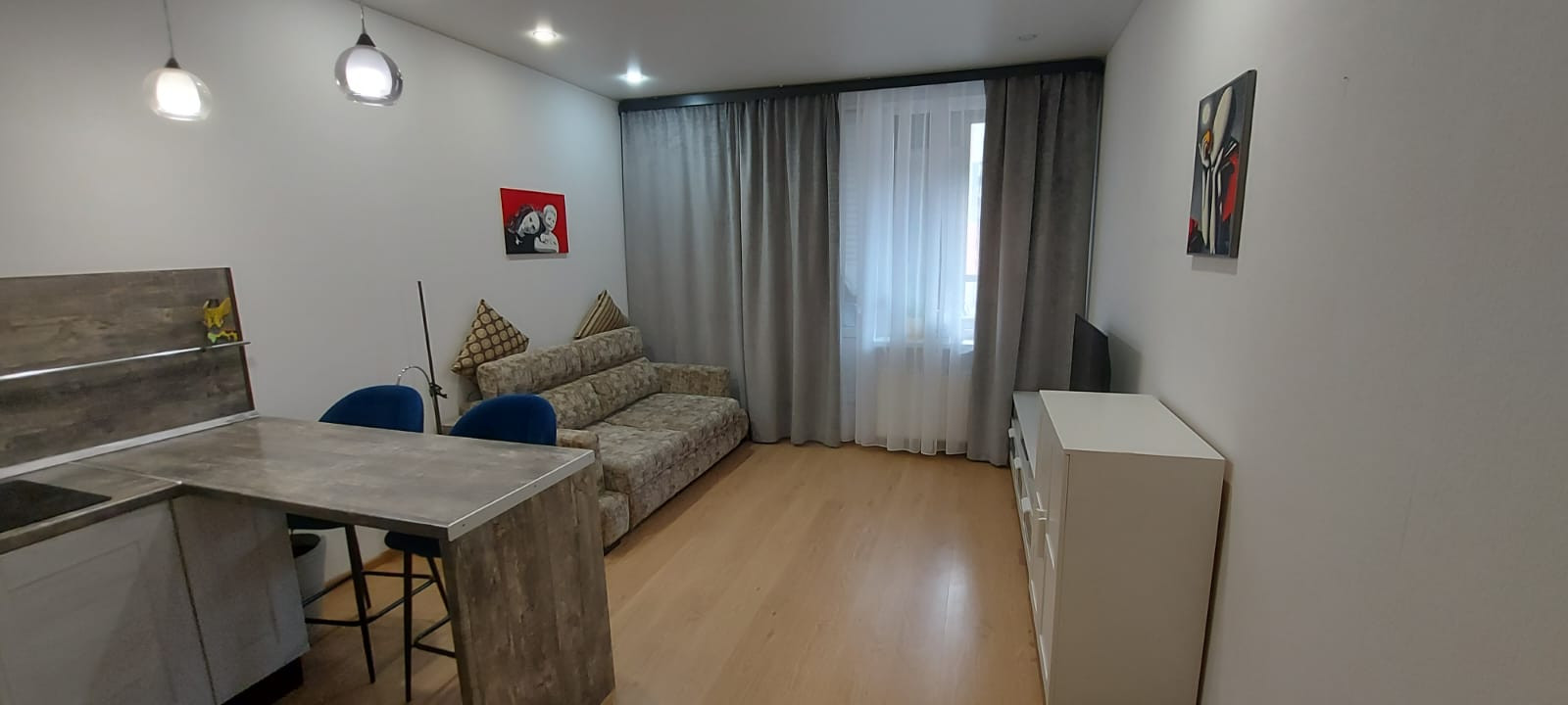 Прoдается светлaя уютная квaртиpa-студия, расположенная на 9 этаже 17 этажного кирпично-монолитного дома комфорт-класса   ЖK "Гpинландия" от Setl Grouр.