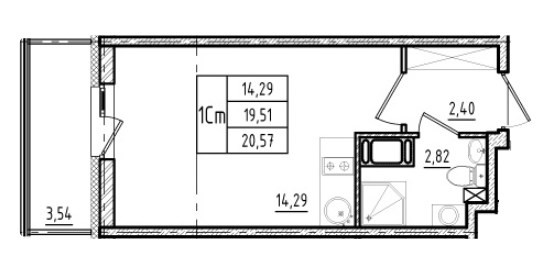 Общая площадь 21 м2