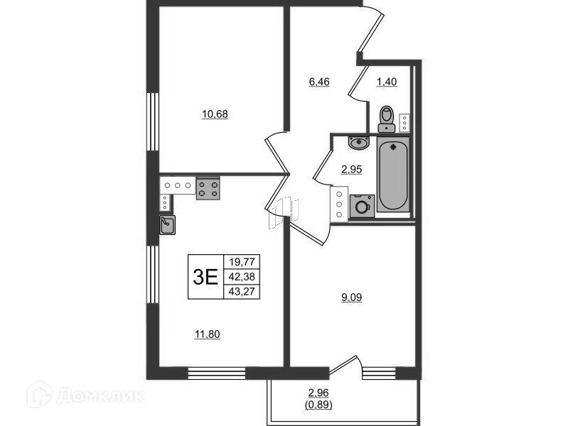 Общая площадь 43.27 м2