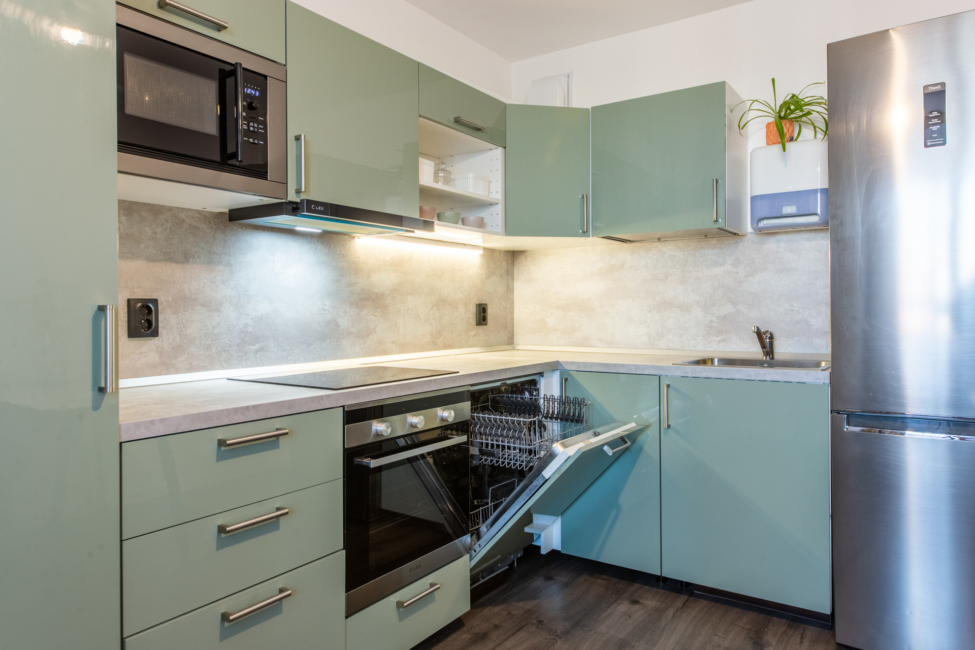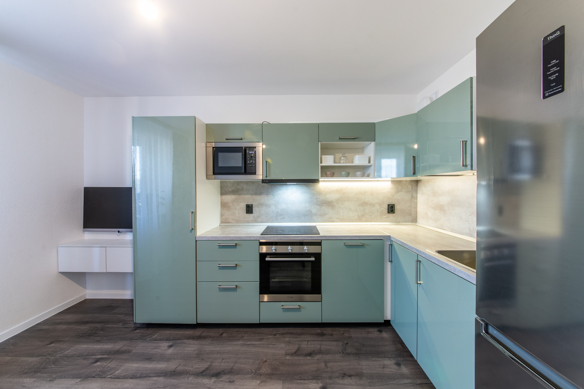 Выполнен ремонт от застройщика. Уютная обстановка квартиры. Из мебели остаются кухонный гарнитур со встроенной техникой (кроме посудомоечной машины). Мебель обсуждаема, поскольку ищем встречный вариант, не понимаем, что будет там.