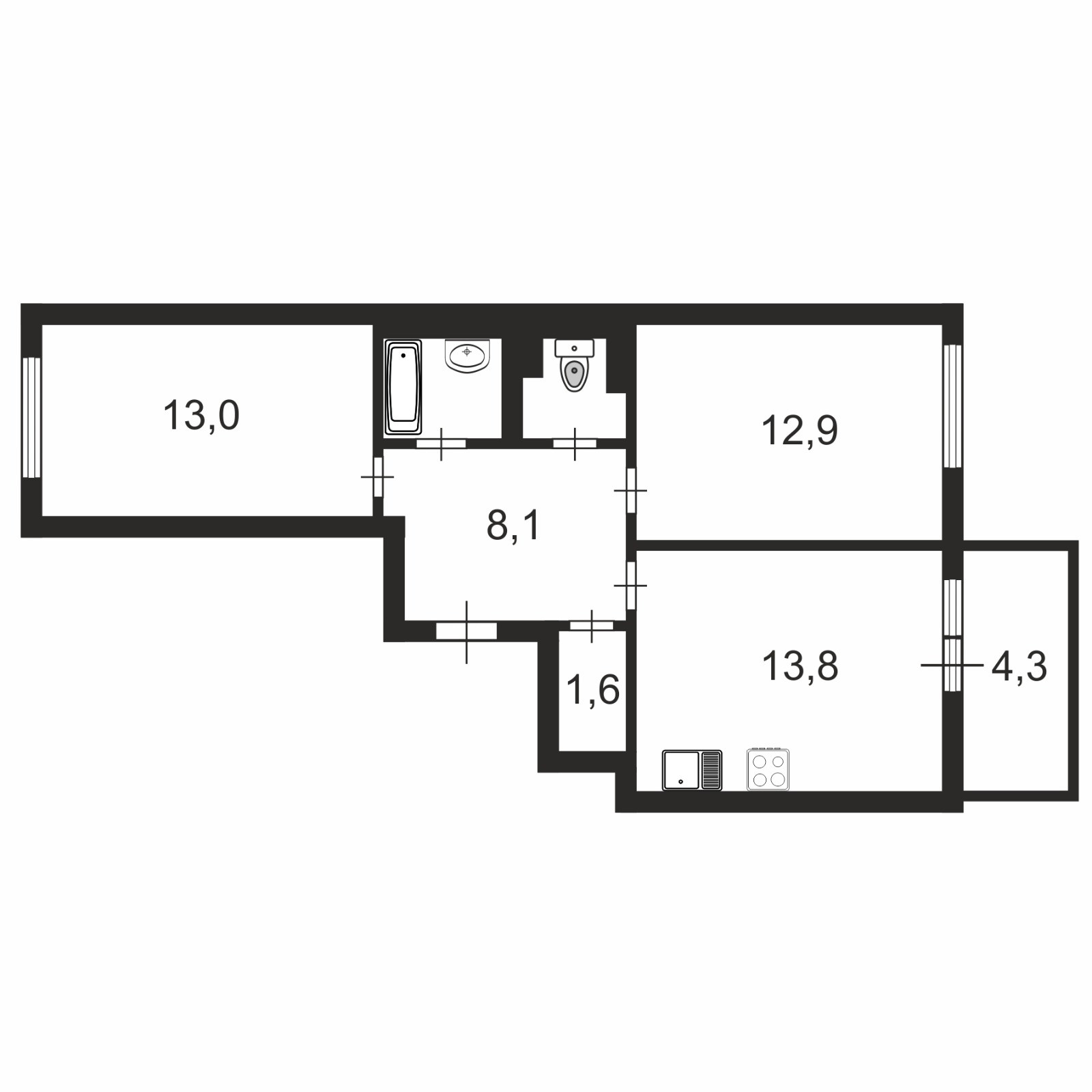 Жилая площадь 25.9 м2