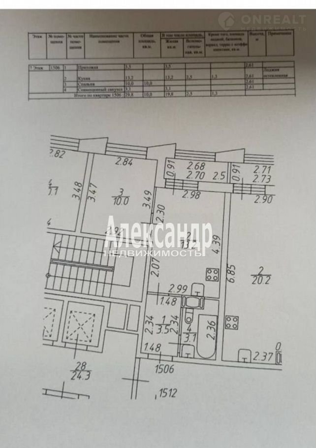 Общая площадь 29.8 м2