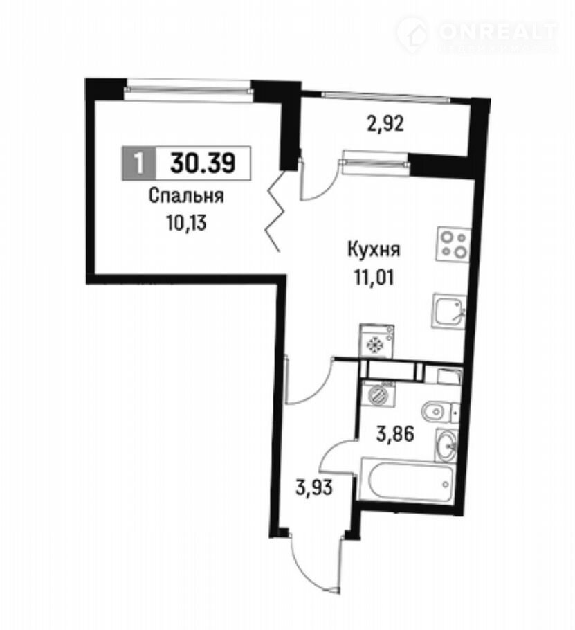 Общая площадь 30.4 м2