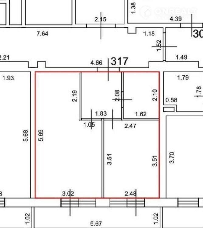 Общая площадь 30.8 м2