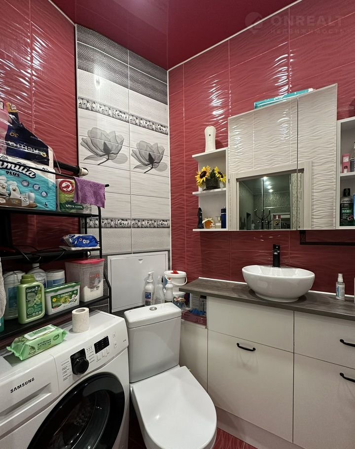 Вместительная тумба со столешницей в ванной