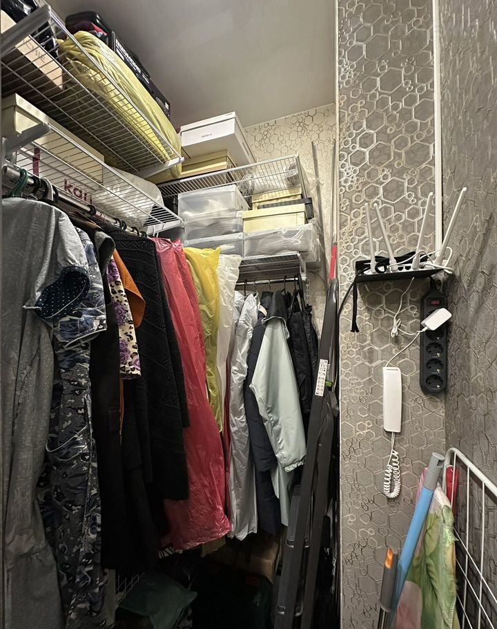 В прихожей сделана вместительная гардеробная с системой хранения