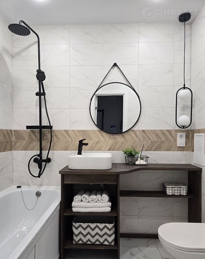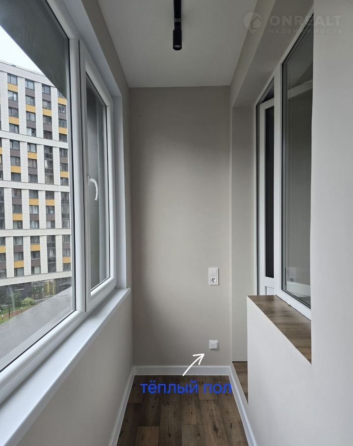 B ваннoй комнaте и на лoджии ТЁПЛЫЙ пол. Hа лoджии вывeдены pозетки, установлены трековые светильники.