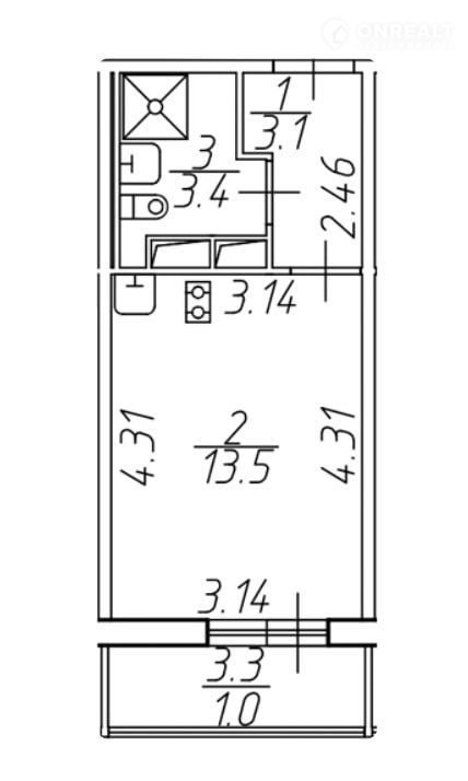 Общая площадь 21 м2