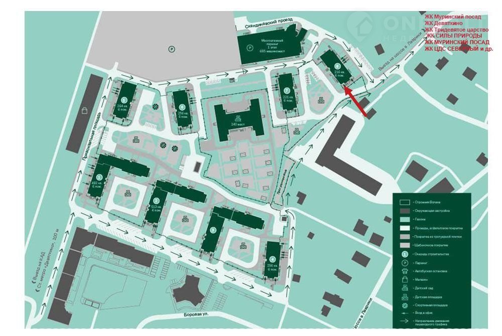 Район Девяткино-Мурино быстро развивается. Здесь проживает уже более 300 тыс. человек. Благоустроенная прилегающая территория, близость к крупным транспортным узлам (рядом метро, развязка КАД, железнодорожный вокзал), насыщенный пешеходный и транспортный трафик.