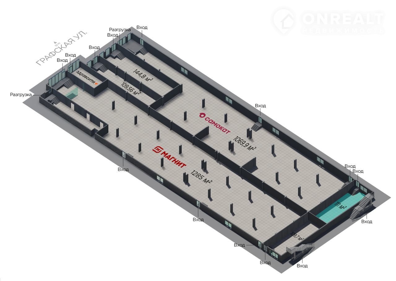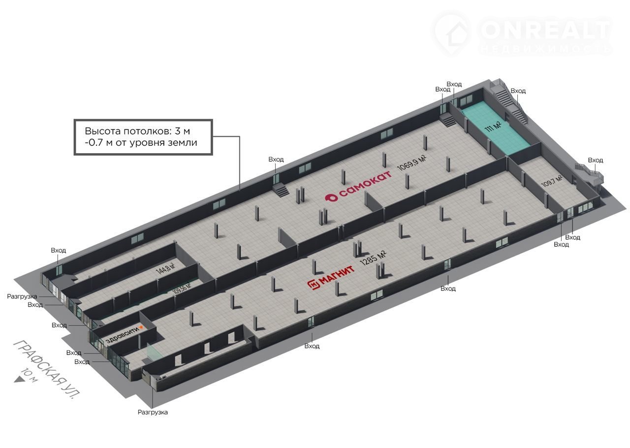 Соседние помещения занимают "Магнит", аптека "Здравсити", "Самокат".