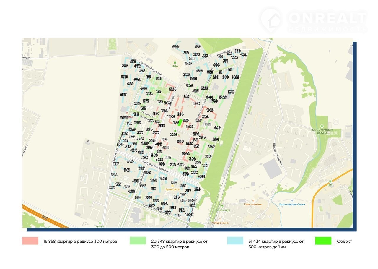 Количество квартир в радиусе 300 метров от объекта: 16 858