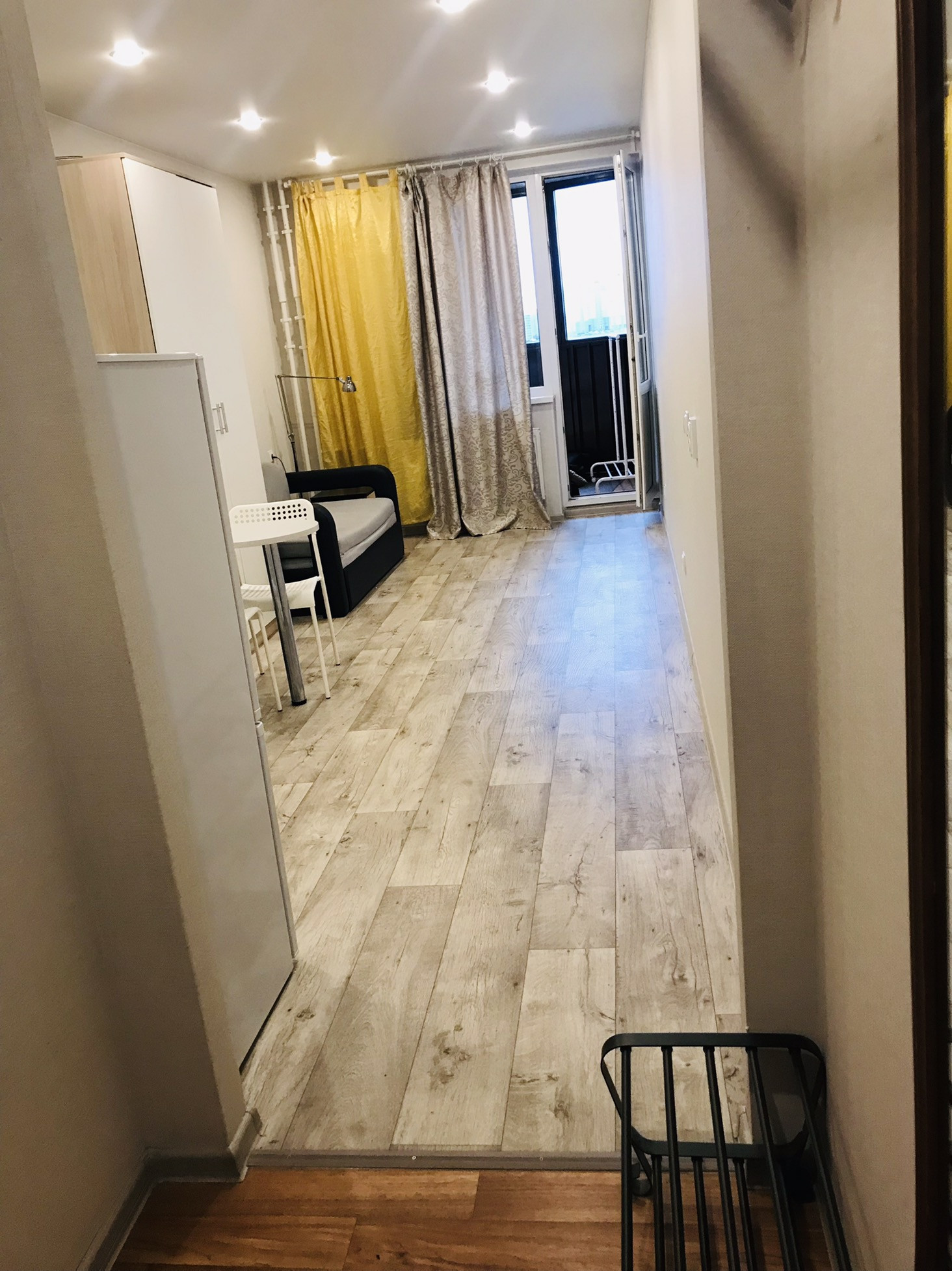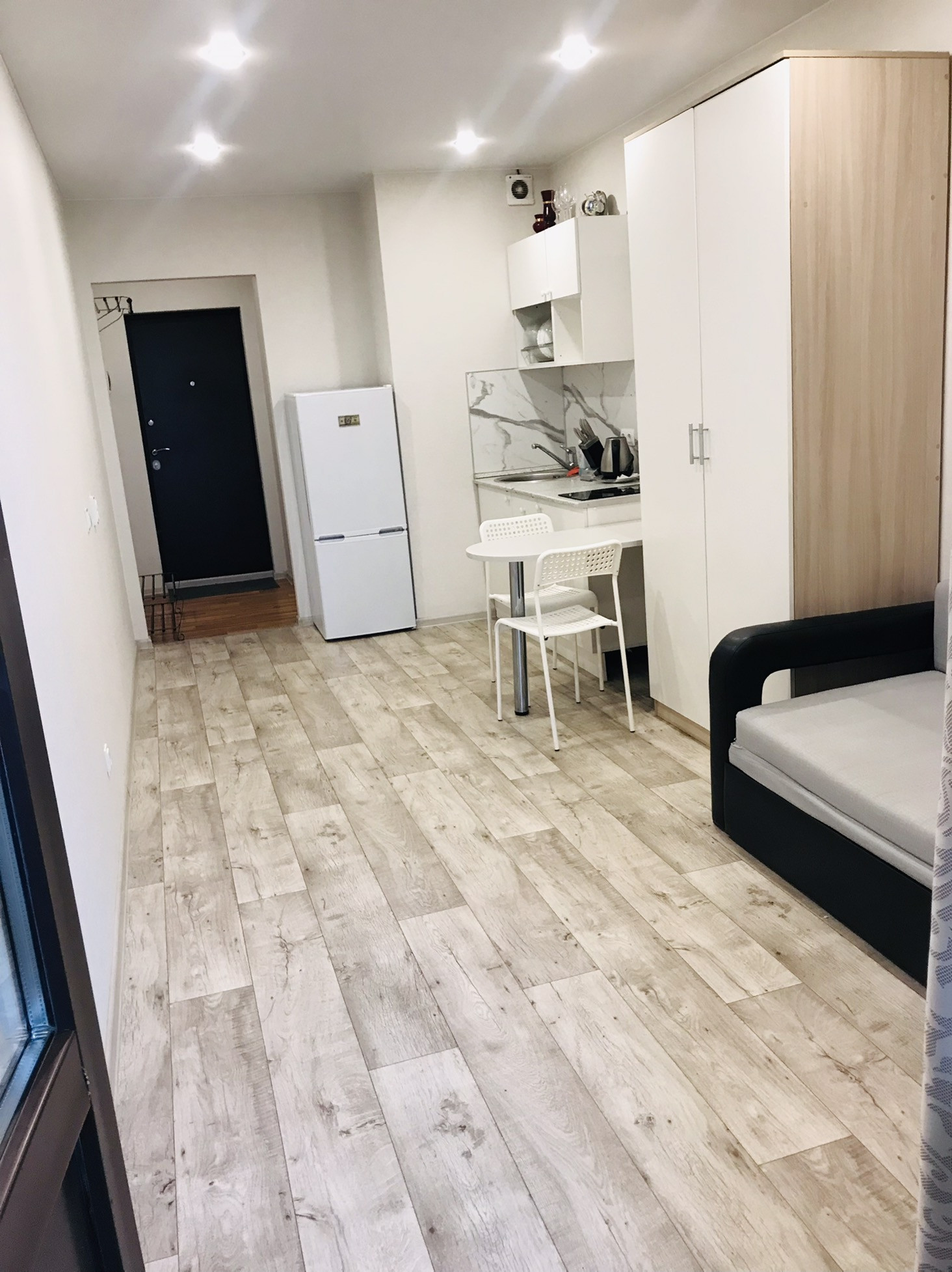 Уютная студия для 1/2 человек, окна на поле, всегда есть парковочные места. Оборудованная кухня, холодильник, стиральная машина, новый диван. Квартира готова к новому жильцу после 9 января.