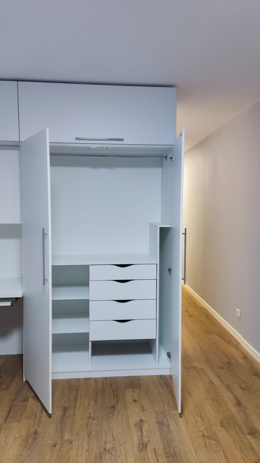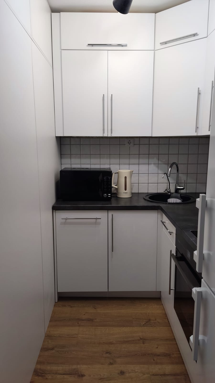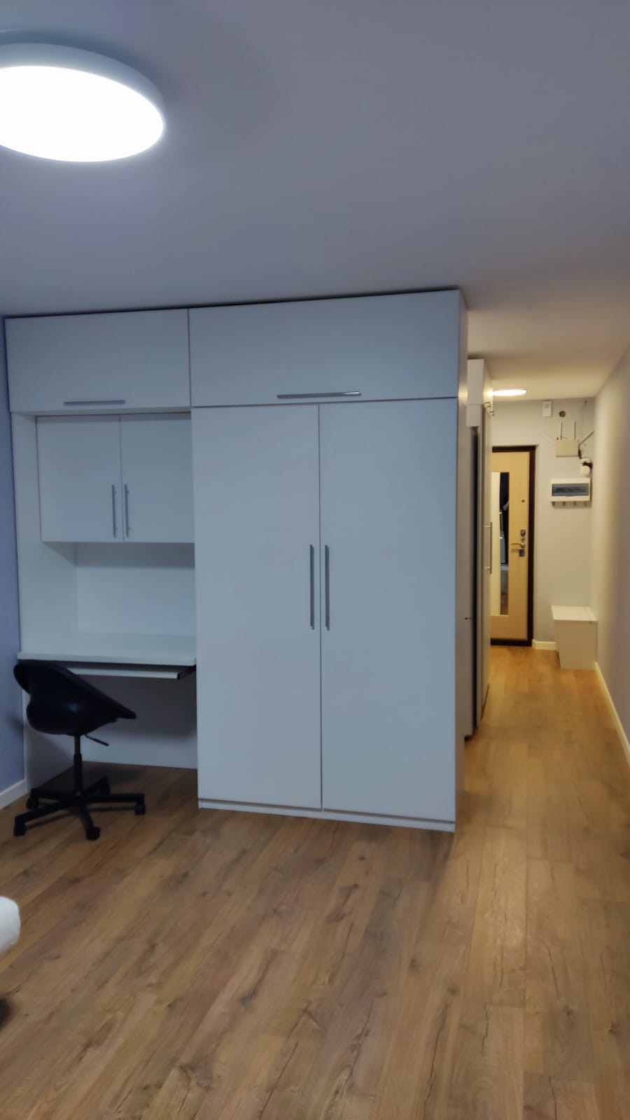 В квартире имеется два шкафа, рабочее место, двуспальный диван, холодильник, микроволновка, духовка, посудомоечная машина, стиральная машина с функцией сушки и т.д.