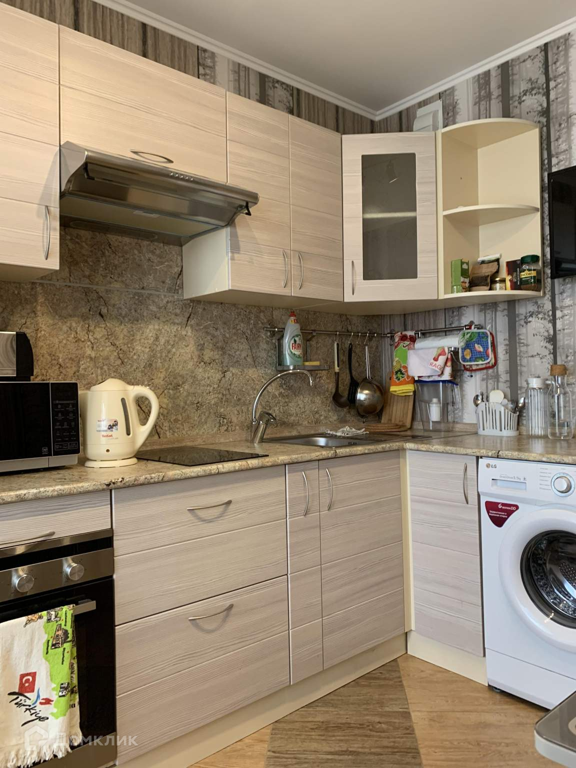Жилая площадь 15 кв.м, кухня 9.5 кв.м, в квартире одно спальное место-кровать, внутри евро ремонт, есть бытовая техника: стиральная машина, холодильник, телевизор, микроволновая печь, встроенная техника, в комнате есть рабочее место, интернет.