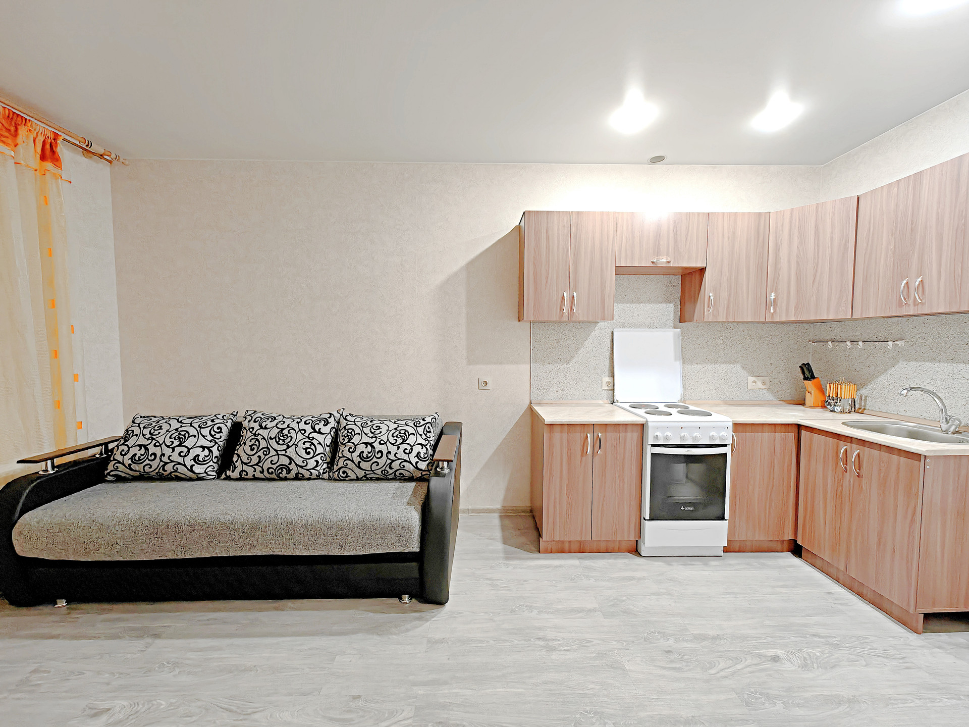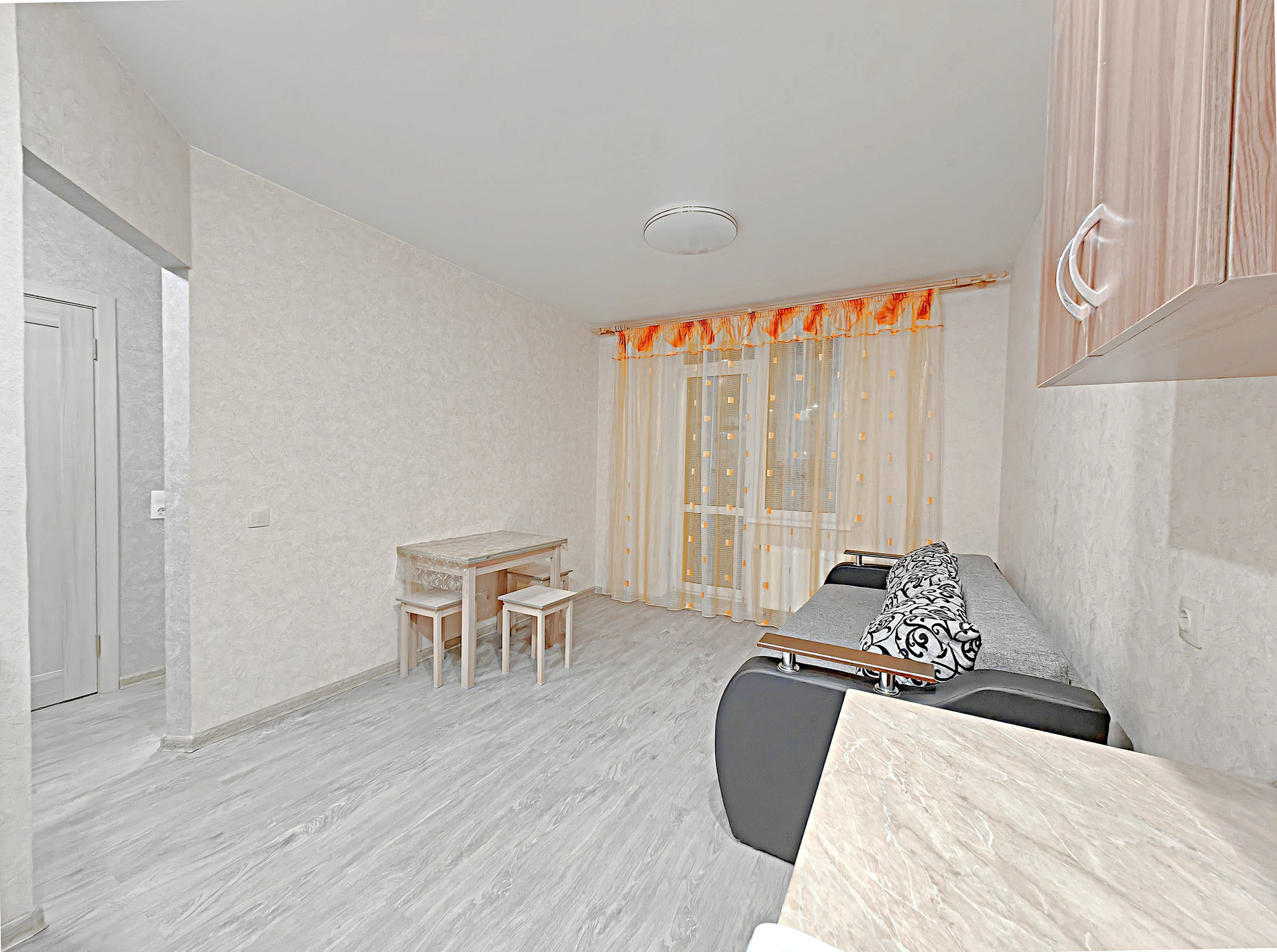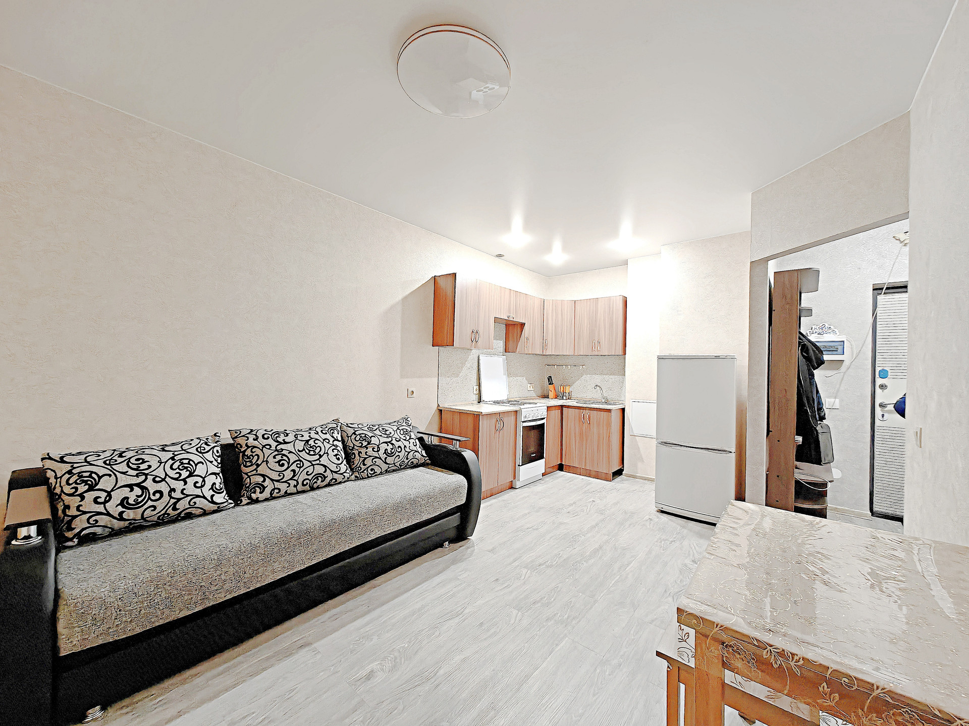 -Отличное состояние. ТОЛЬКО ПОСЛЕ РЕМОНТА. Новая мебель и сантехника!!! Общая площадь 35м, Гостиная-кухня 18м, комната 12м, Лоджия 5м, С/У совмещенный.