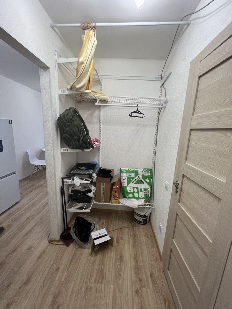 В коридоре сделана вместительная система хранения. Уже заказаны новые стеклянные двери купе.