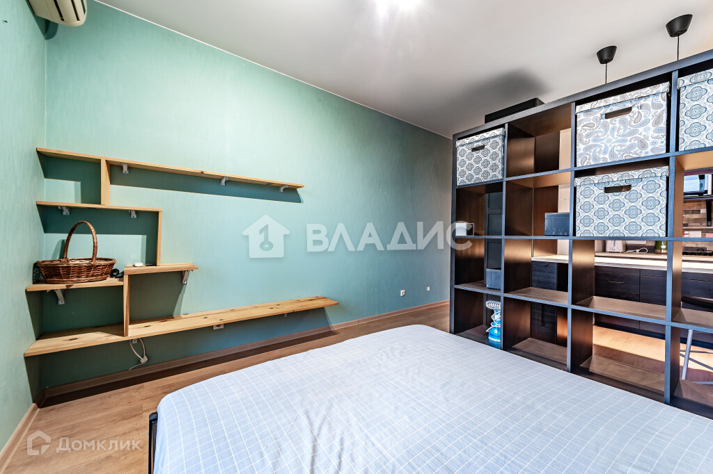 В квартире просторная двуспальная кровать, большое количество место для хранения, вся необходимая для проживания техника (холодильник, стиральная машинка, чайник, микроволновая печь, мультиварка).