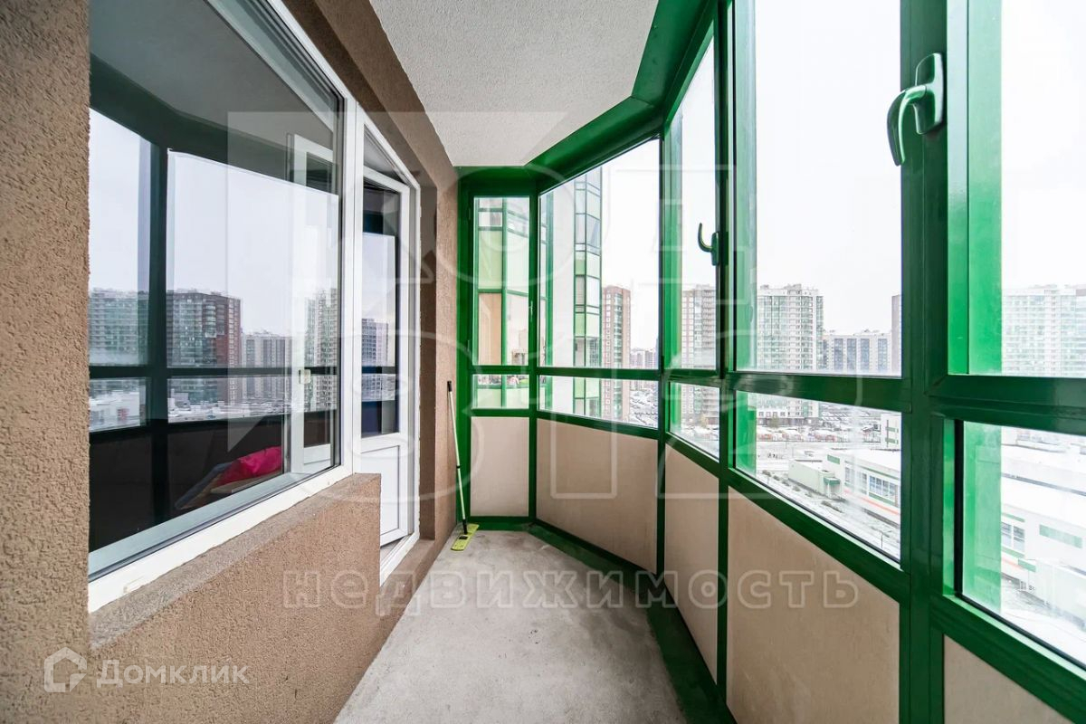 Застекленный балкон выходит окнами в тихий двор.