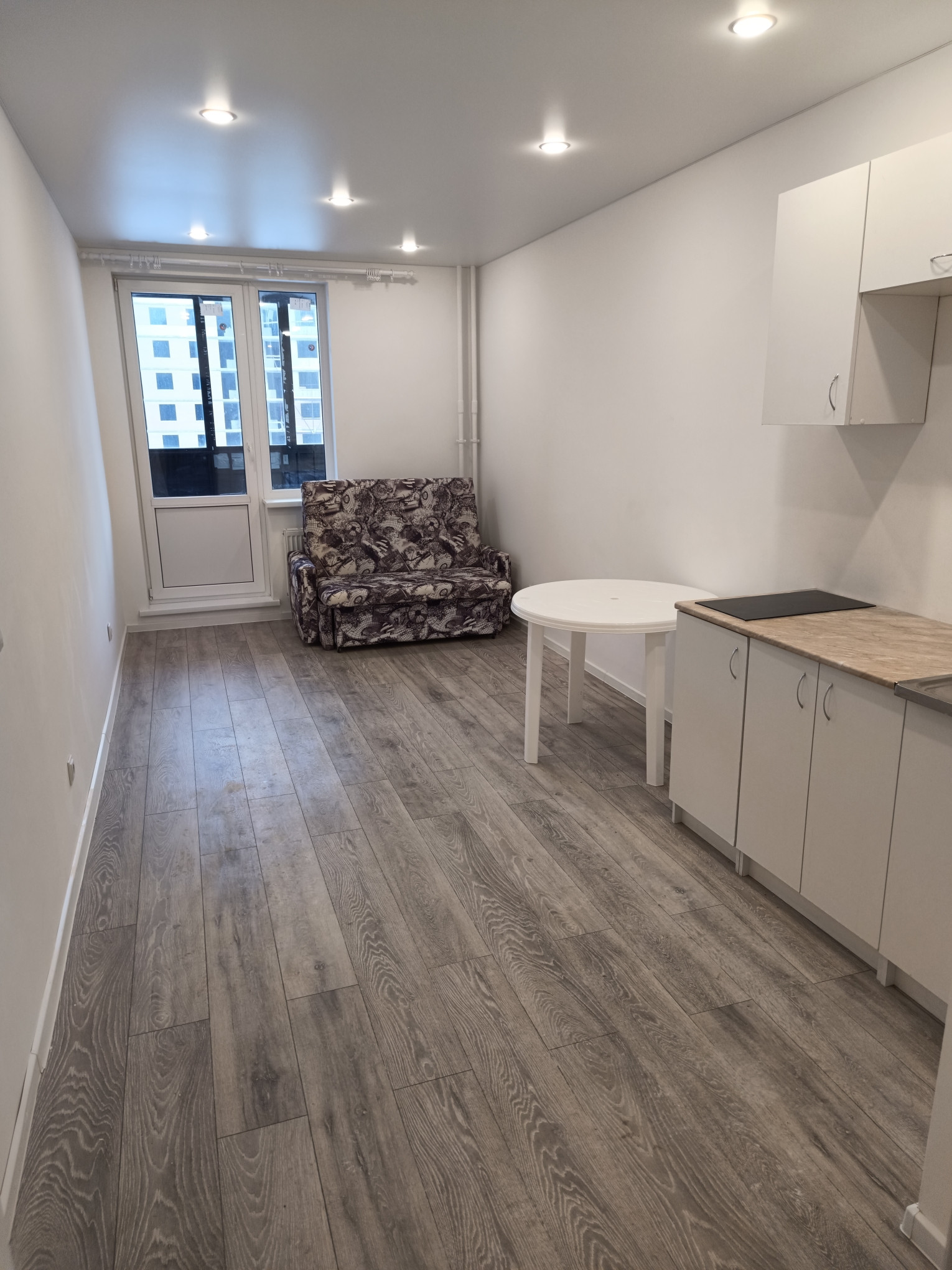 Сдаем студию со свежим ремонтом новым оборудованием и минимумом новой мебели, незаставленную. Зона кухни компактно выделена, поддержана отдельным светом, есть вытяжка. В комнате столик и диван раскладывается вперед. Установлен карниз для штор. На лоджии кресла. Лоджия застекленная. Окна во двор удалены от дороги и шума. В санузле душ, шторка отодвигается и не съедает пространство. Новая стиральная машина, зеркало, полотенцесушитель. Можно докупить недостающее в счет аренды. Ждем аккуратных жильцов. Пишем договор.