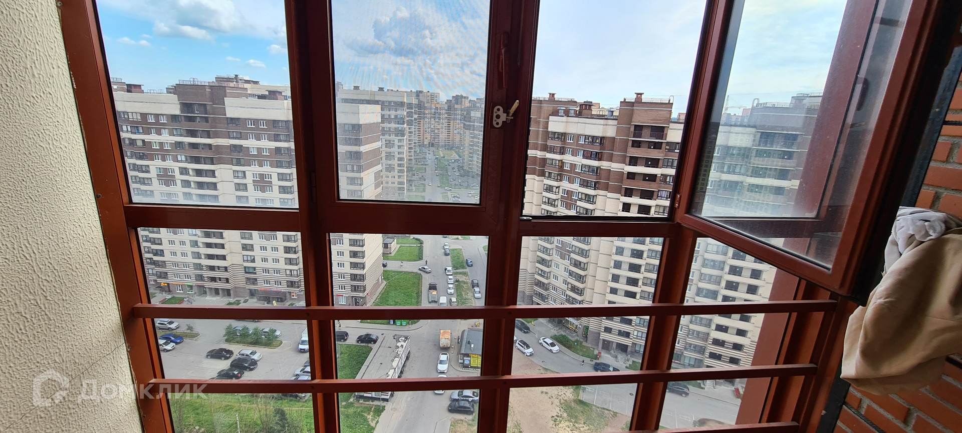Квартира расположена на 15-м этаже 17-этажного нового кирпично-монолитного дома.
