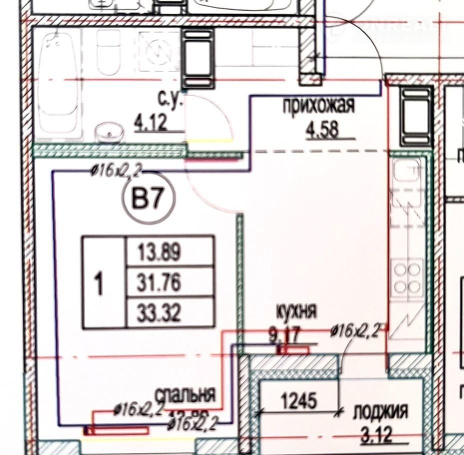 Общая площадь 33 м2
