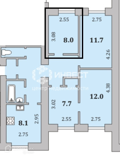 Жилая площадь 8 м2