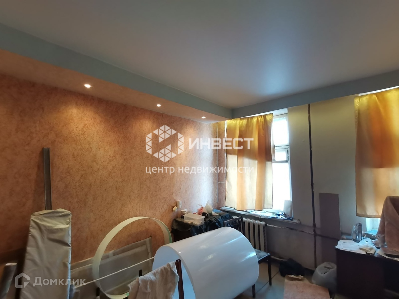 Установлен навесной потолок, поклеены обои, в остальном состояние обычное.