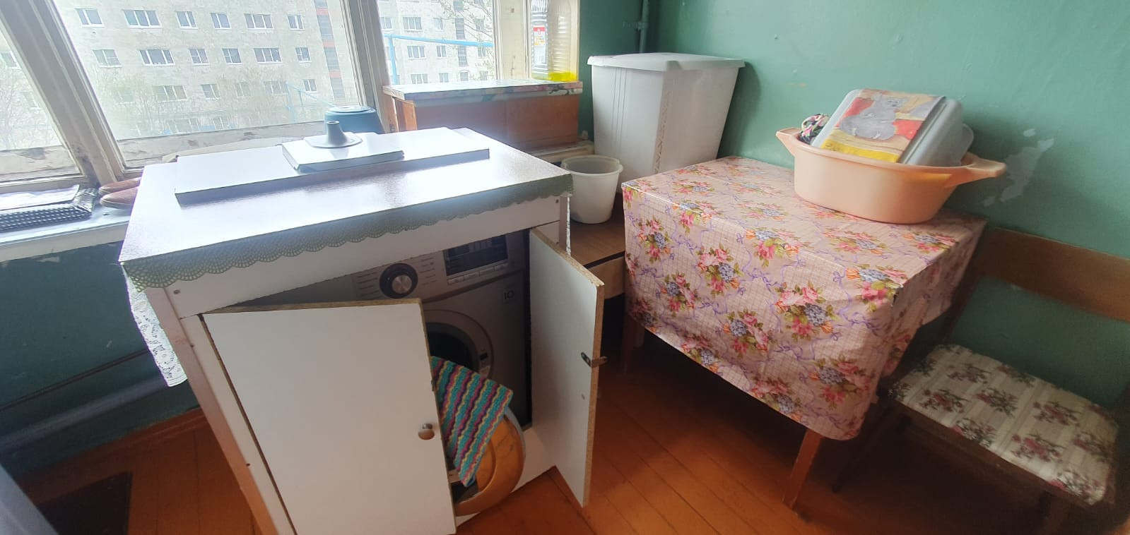 Очень хорошее состояние, мебель и техника, замена дверей, стеклопакеты, жалюзи.
