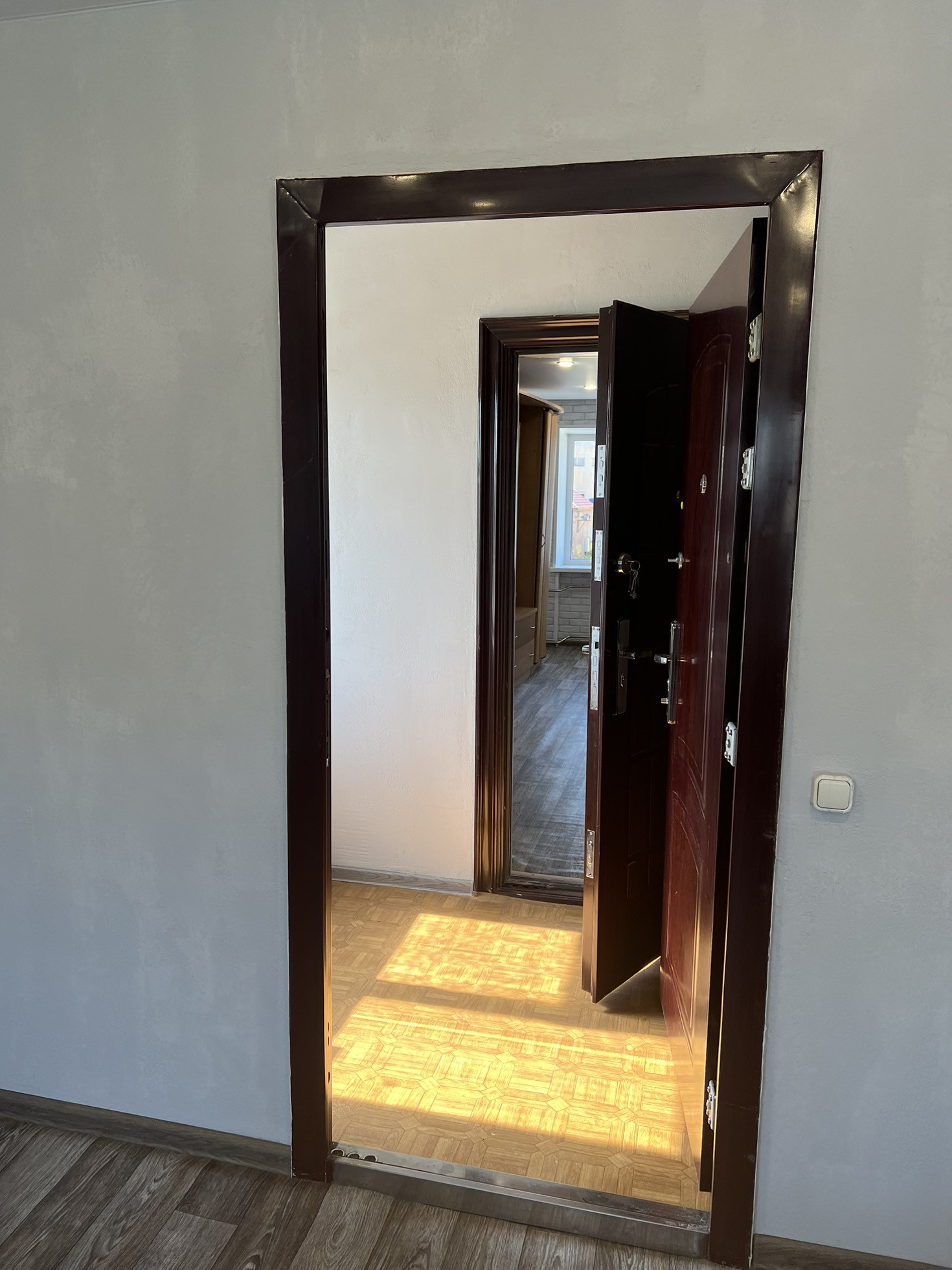 . Произведен свежий ремонт : замена окон , замена батарей отопления , на полу линолеум , натяжные потолки .Комнаты отгорожены, имеется свой тамбур, отдельный от соседей .