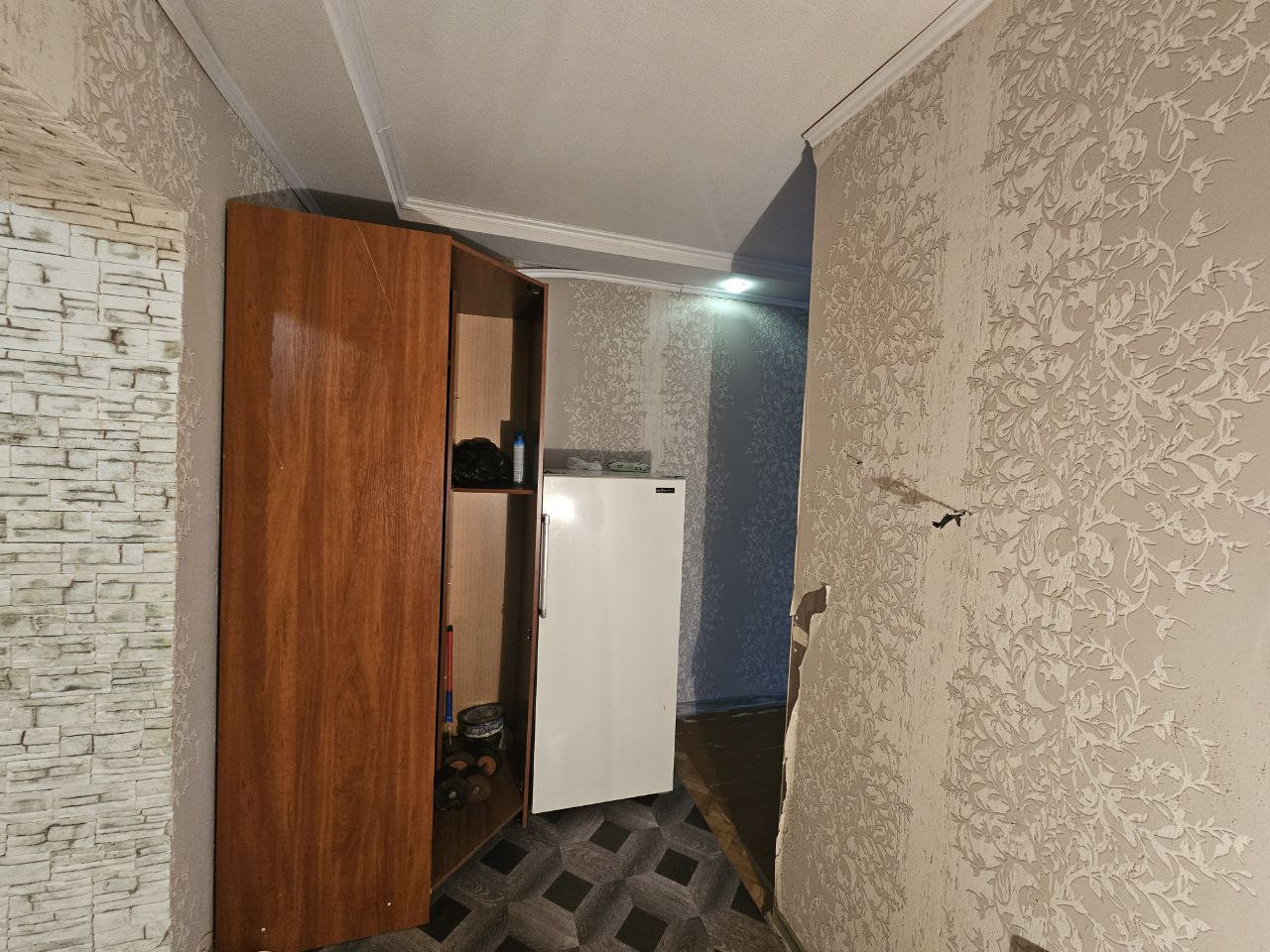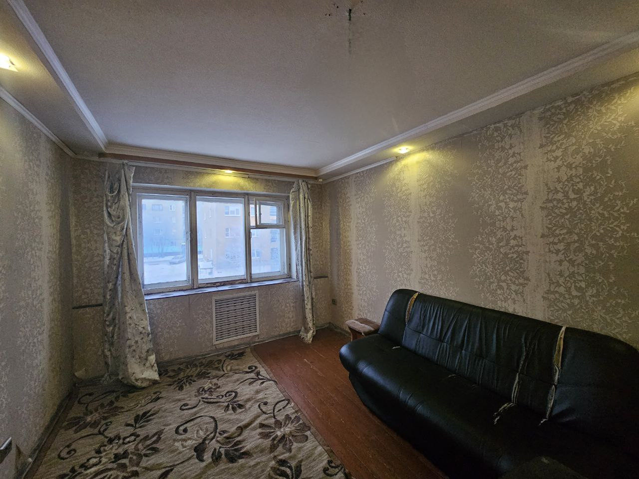 На полу линолеум. Светлая и солнечная комната, малонаселенная квартира. Соседи тихие.