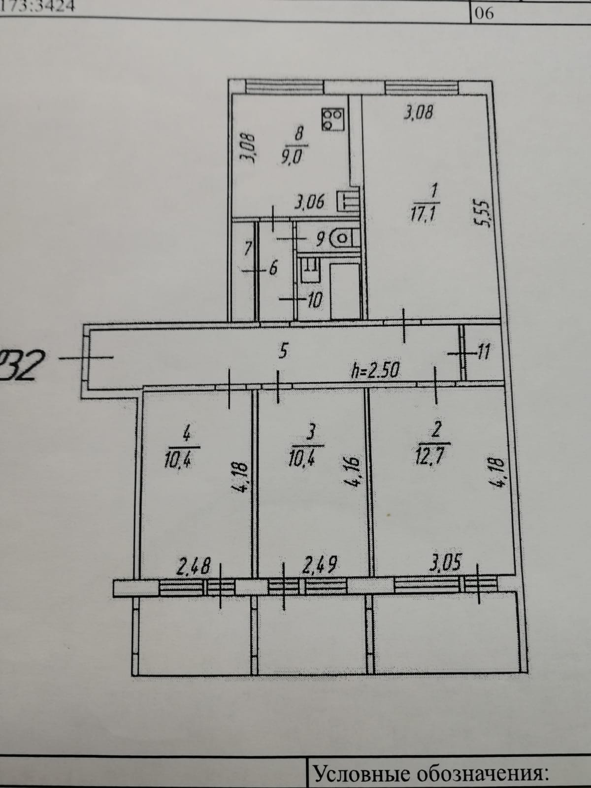 Высота потолков 2.5 м