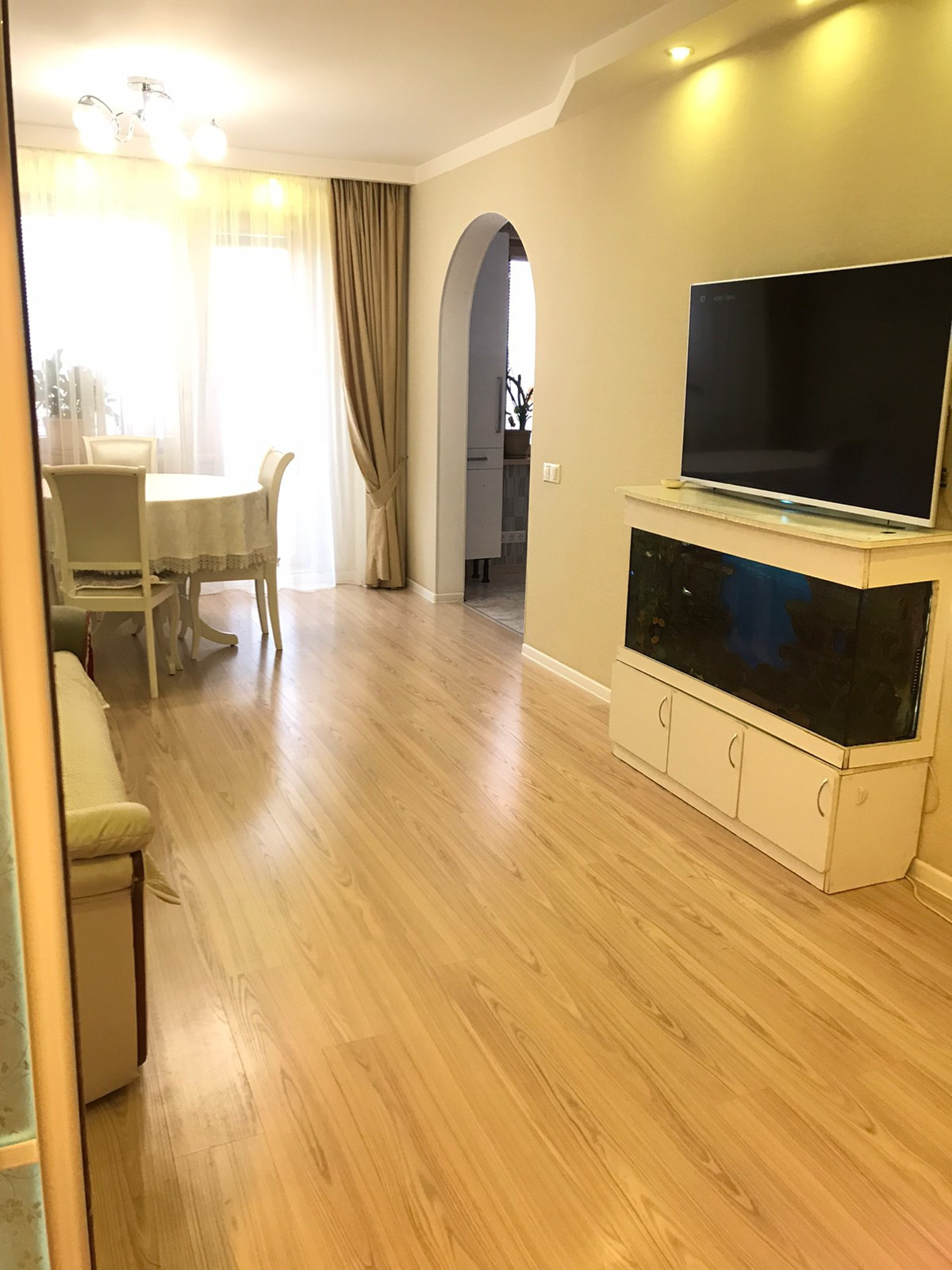 Предлагается к продаже, светлая и уютная квартира. Блок из двух квартир , объединённые в комфортабельные условия. Перепланировка полностью узаконена. Три раздельные комнаты + кухня- гостиная. Современная кухня полностью остаётся!!! Из гостиной можно выйти на застеклённый балкон с панорамным видом на город. Также остаётся аквариум , обеденный стол , и два телевизора. Просторная ванная комната не требует замены сантехники , вся коммуникация поменяна. Остаётся бойлер и стиральная машина. Уютная спальня. Остаётся весь гарнитур из массива. В детской комнате лоджия присоединена , остаётся диван и комод . Кабинет можно оформить по собственному желанию., имеется вместительный шкаф-купе и камин. Также имеется гардеробная . На кухне , в ванной, в коридоре и лоджии - тёплый пол. На всех окнах встроенные жалюзи, что очень актуально в полярный день. Инфраструктура идеальная : всё в шаговой доступности , детский сад, гимназия , остановка общественного транспорта. Квартира продаётся в связи с переездом в другой город . Встречный вариант не нужен. Риелторов без покупателей просьба не беспокоить.