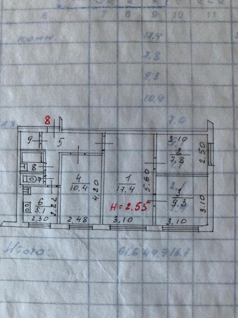 Общая площадь 62 м2