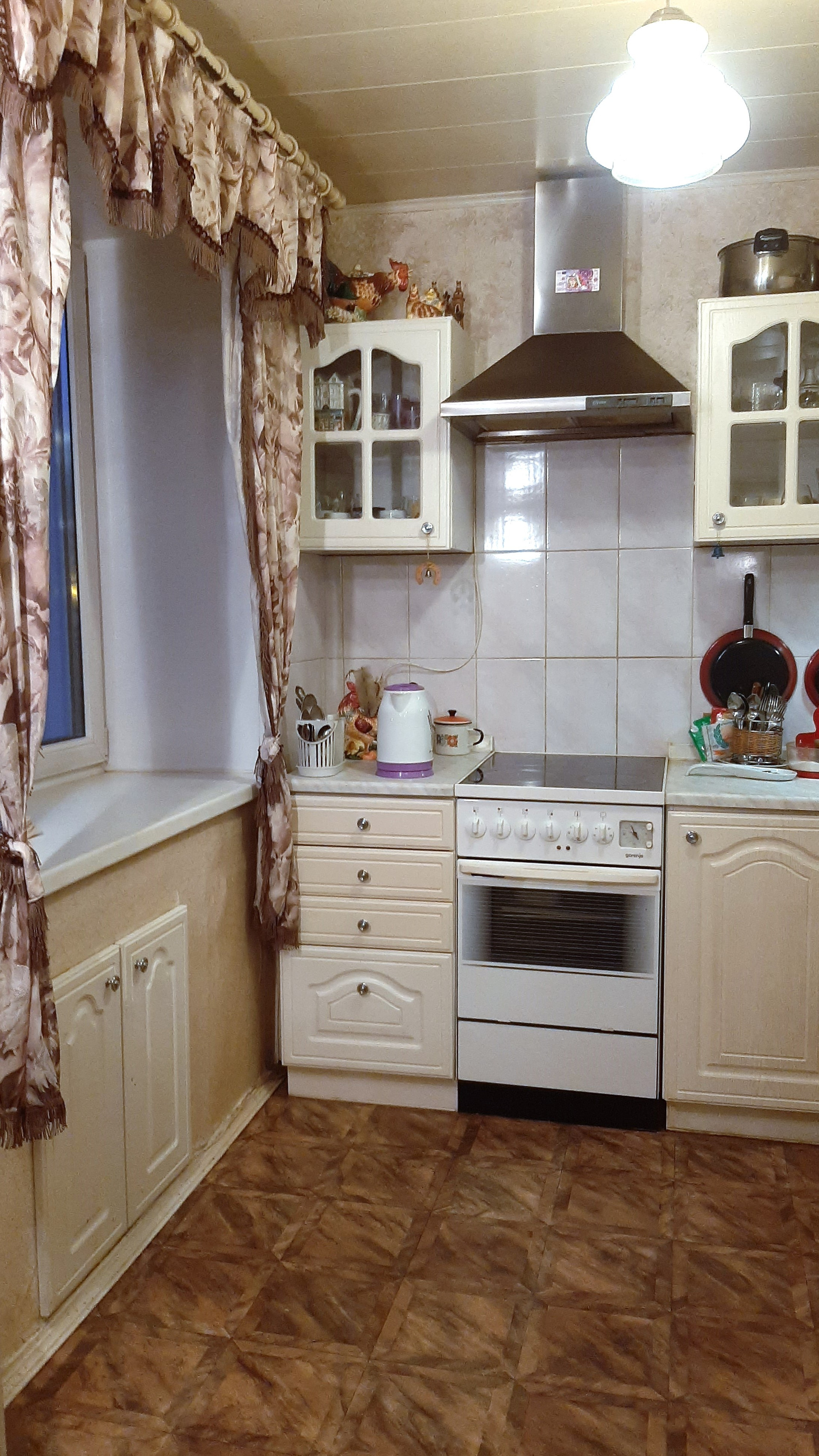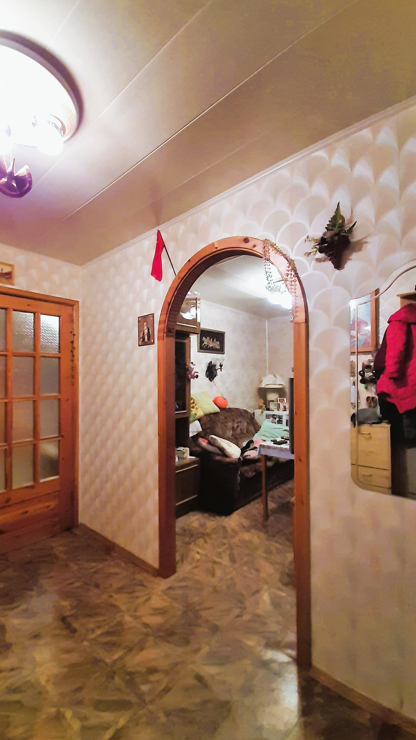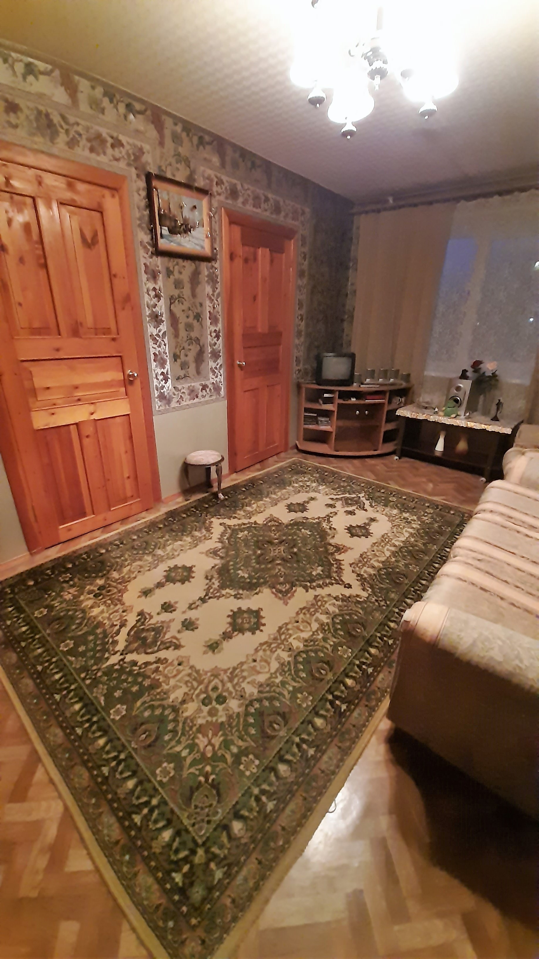 Кирпичный дом, три смежно-изолированные  комнаты + кухня-гостиная, с/у совмещен  (замена труб, кафель), межкомнатные двери из дерева (сосна), есть балкон. Угловая, но теплая, окна на улицу (стеклопакеты).