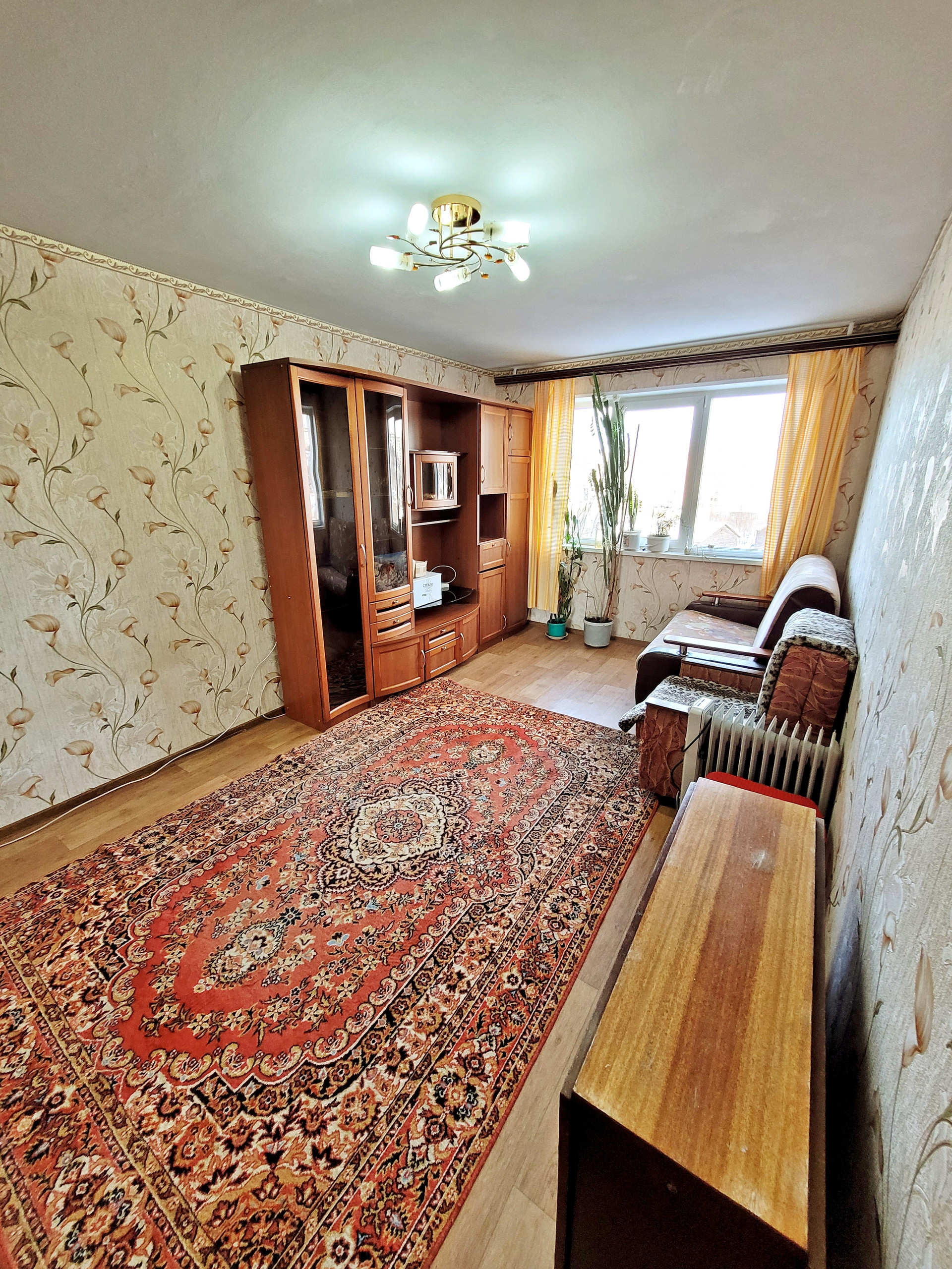 Квартира в жилом состоянии, косметический ремонт (с/пакеты, хорошая вх.дверь, на полу линолеум, в нише прихожей есть гардеробная). Комната прямоугольной формы, светлая и теплая. Санузел раздельный, ванная в краске - все аккуратно и чисто (новая ванная, раковина, унитаз, сантехника, замена подводки, полотенцесушителя). В кухне кафельный фартук. В квартире остается вся мебель и техника!
