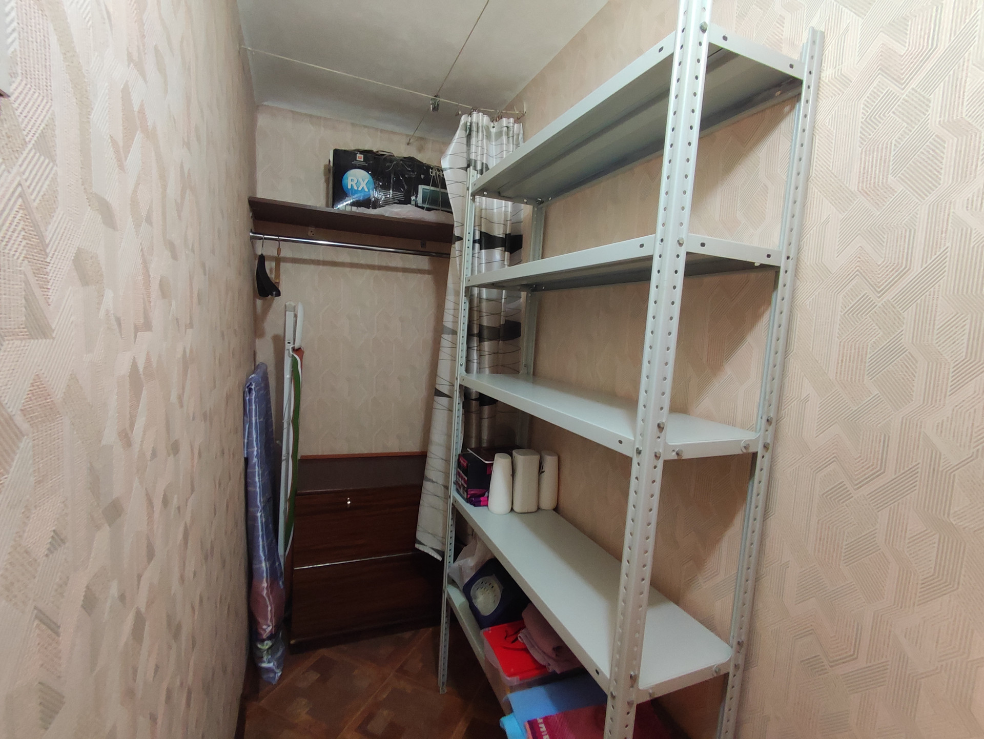 Зал площадью 18 квадратных метров, в нём размещены два удобных раскладывающихся дивана, мебельная стенка с телевизором и журнальный столик. В комнате есть дверь ведущая в просторную кладовую-гардеробную полностью оборудованную для хранения вещей и одежды. Окно застеклено стеклопакетами, потолок натяжной, на батареях отопления установлены декоративные экраны.
