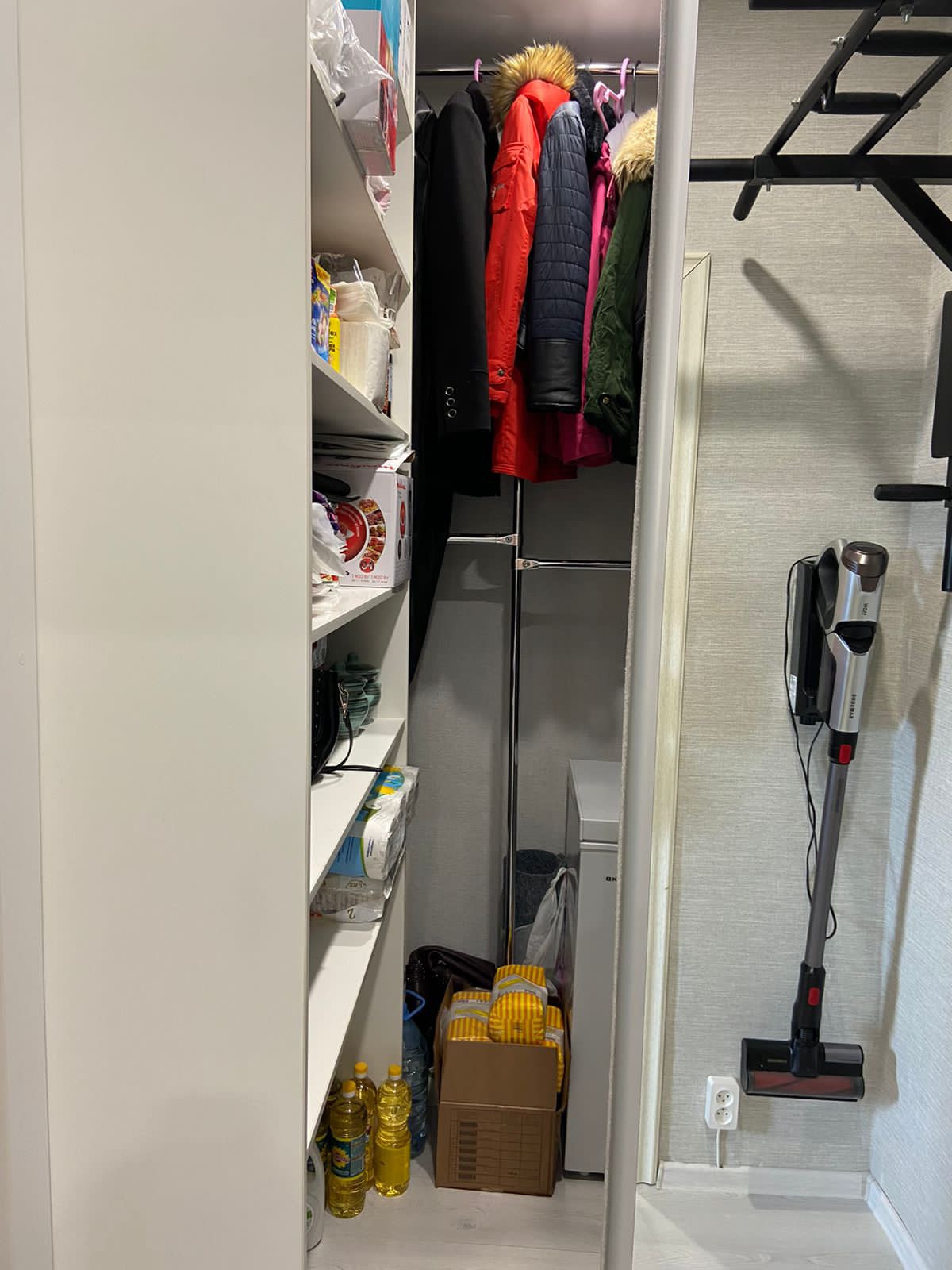 В гардеробной  установлена морозильная камера.